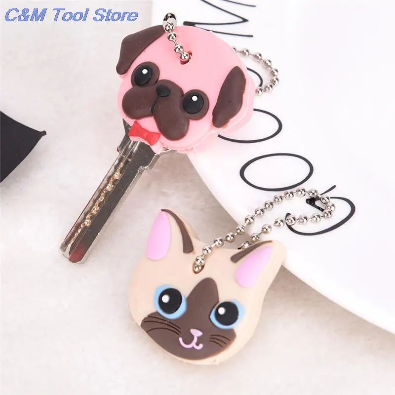 Чехол для ключей, силиконовый чехол для автомобиля с изображением милых животных, кольцо в форме ключа