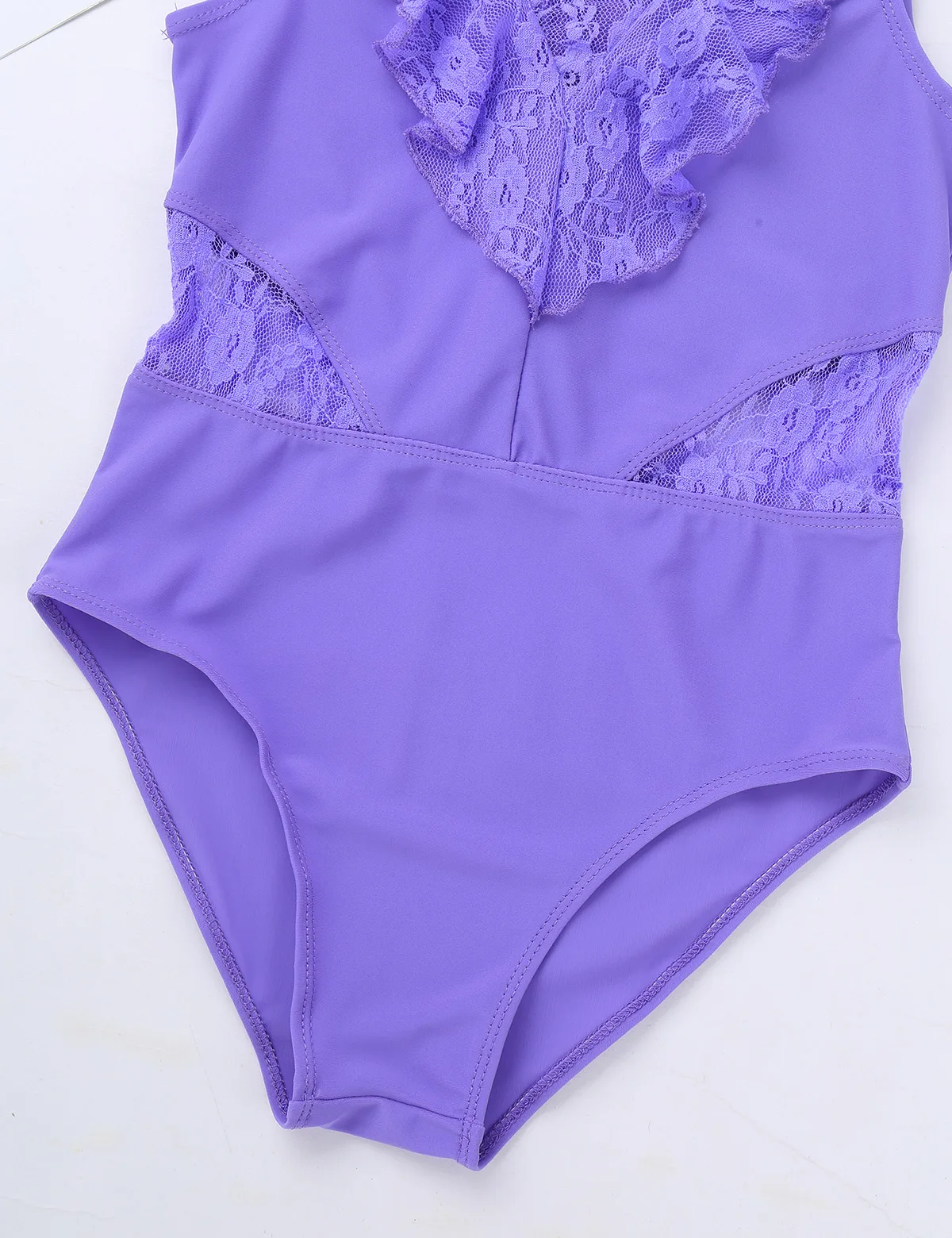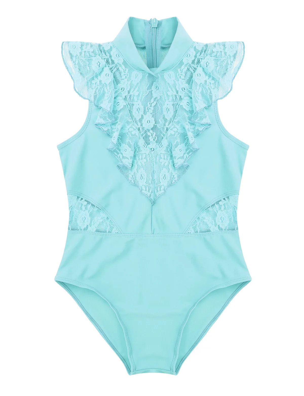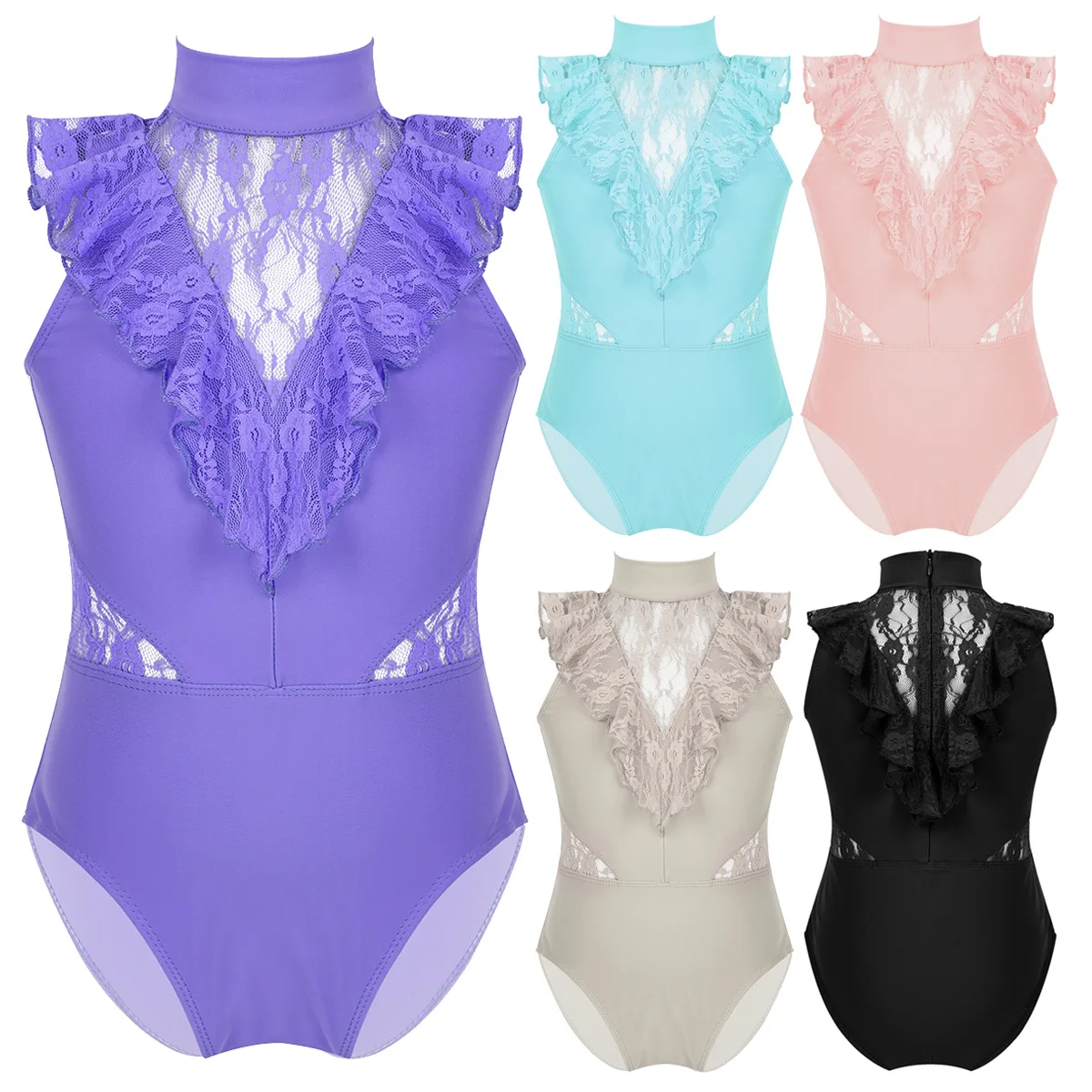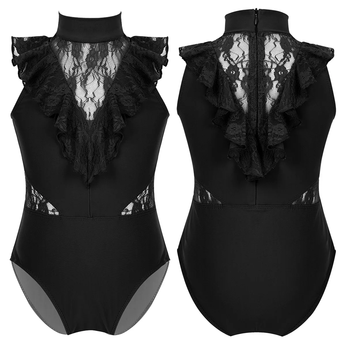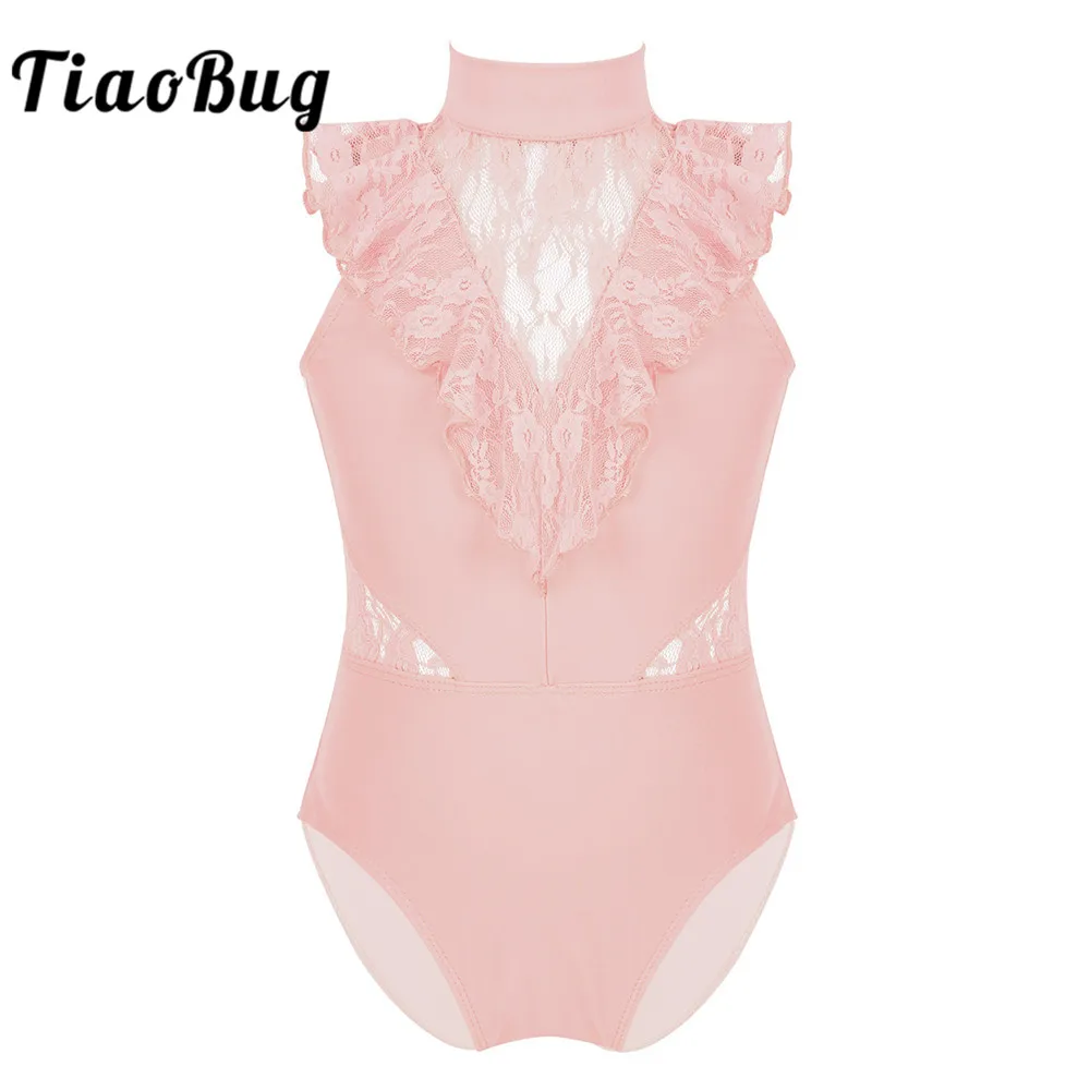 Детская танцевальная одежда для девушек TiaoBug, гофрированный кружевной комбинезон на молнии сзади, гимнастический купальник без рукавов, балетный сценический костюм