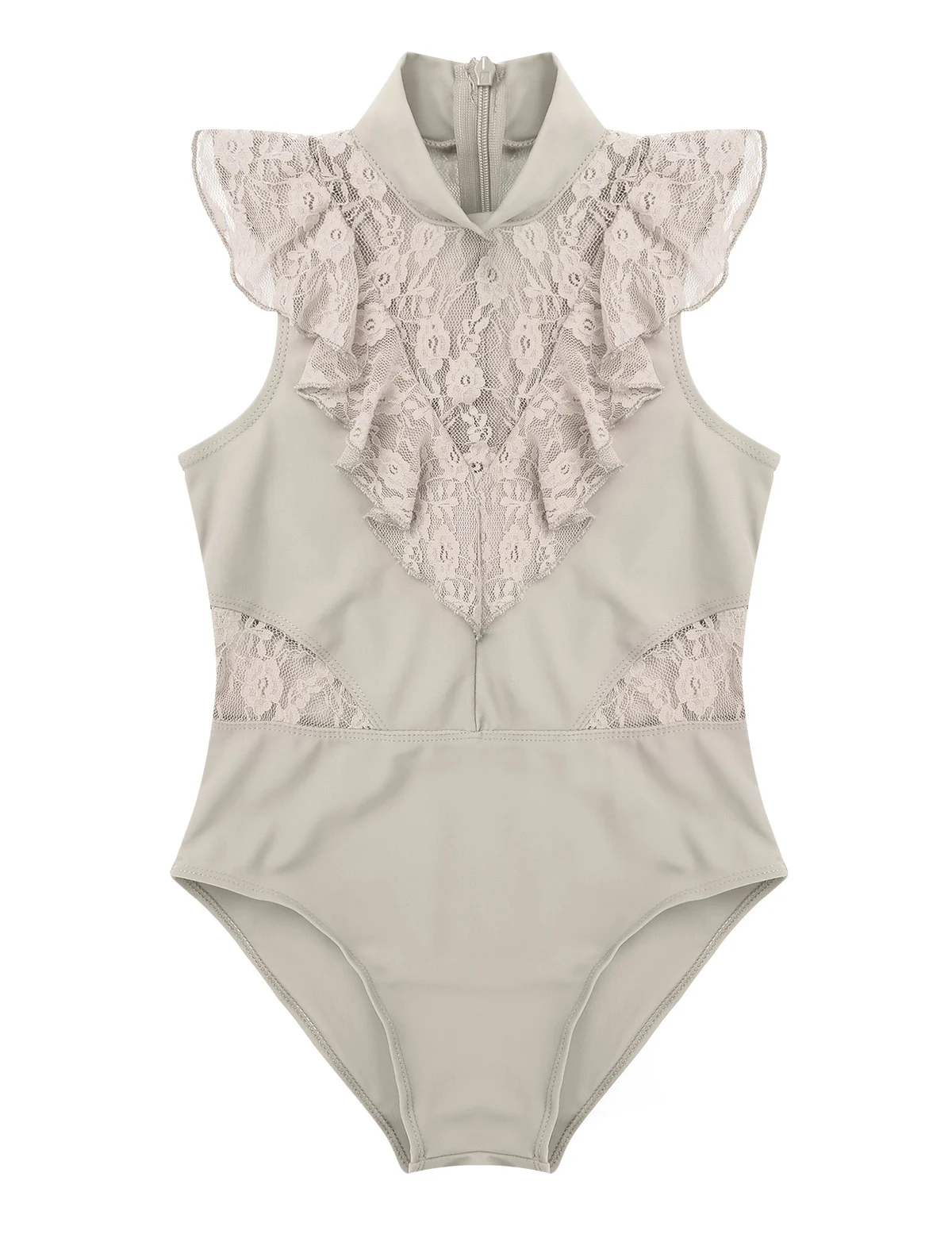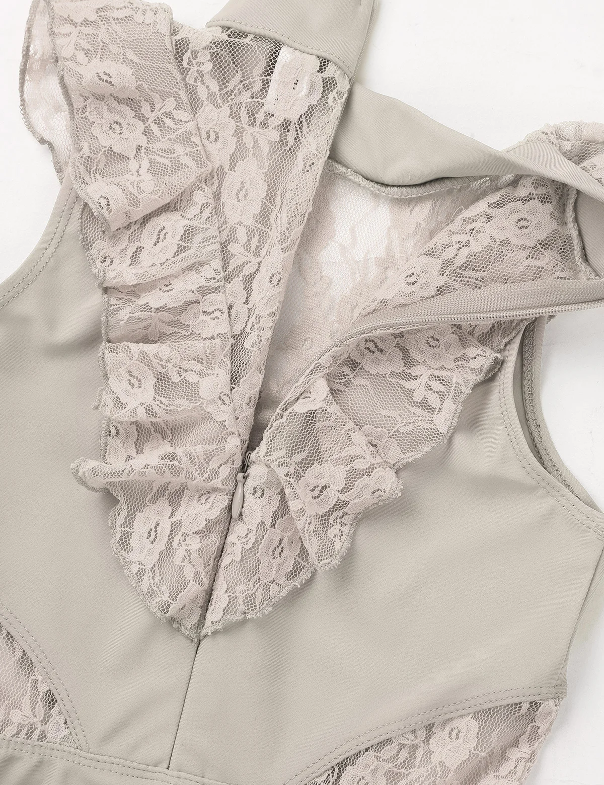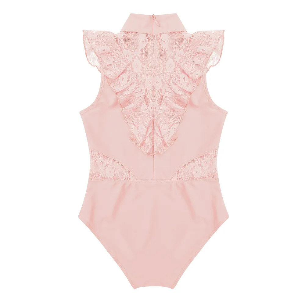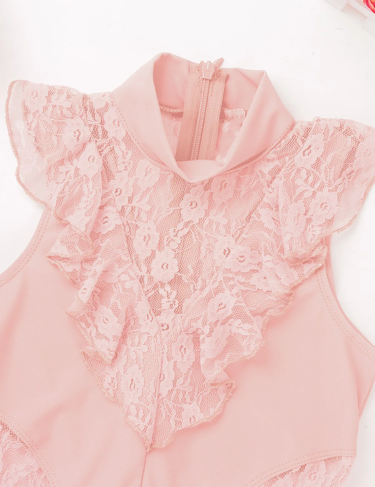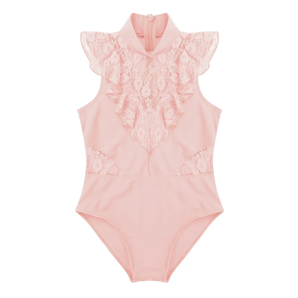 Детская танцевальная одежда для девушек TiaoBug, гофрированный кружевной комбинезон на молнии сзади, гимнастический купальник без рукавов, балетный сценический костюм