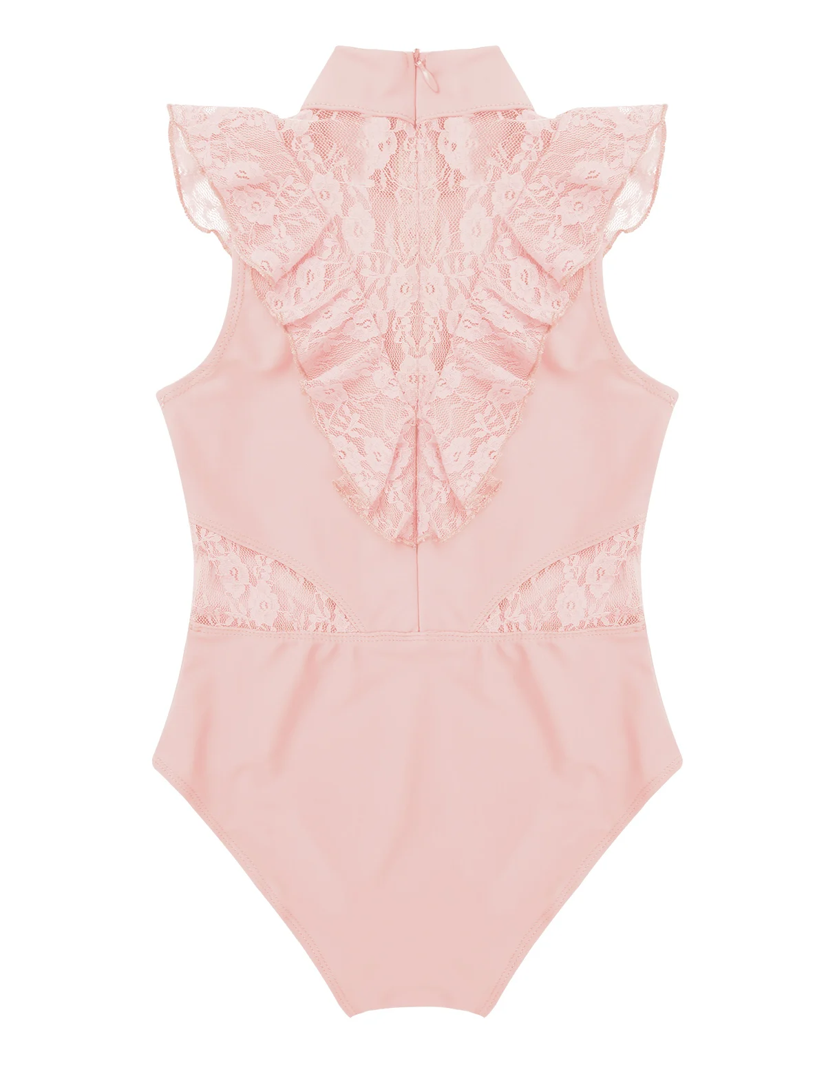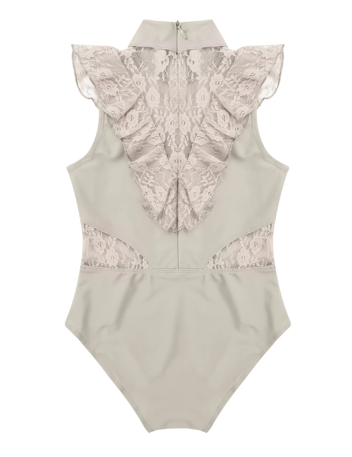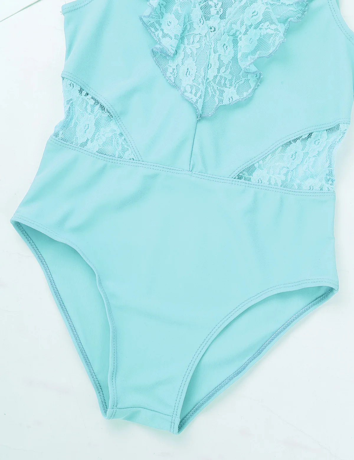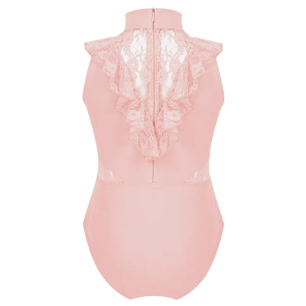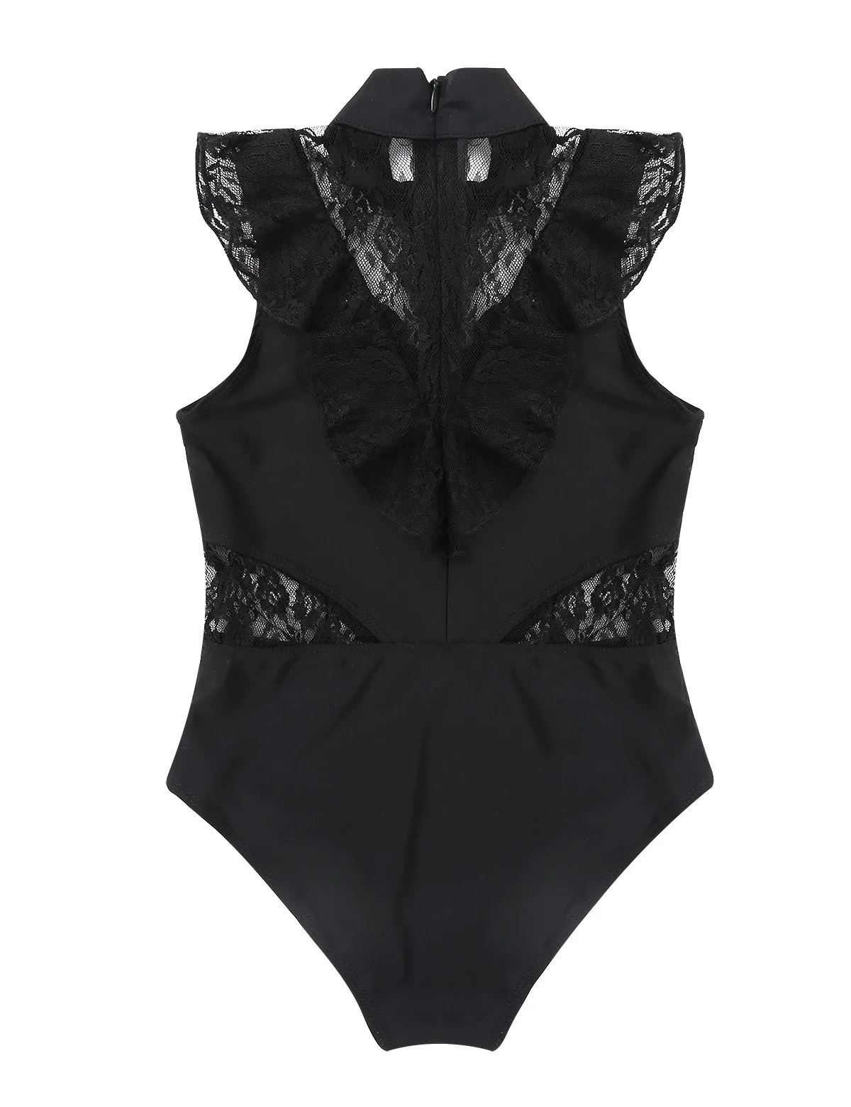 Детская танцевальная одежда для девушек TiaoBug, гофрированный кружевной комбинезон на молнии сзади, гимнастический купальник без рукавов, балетный сценический костюм