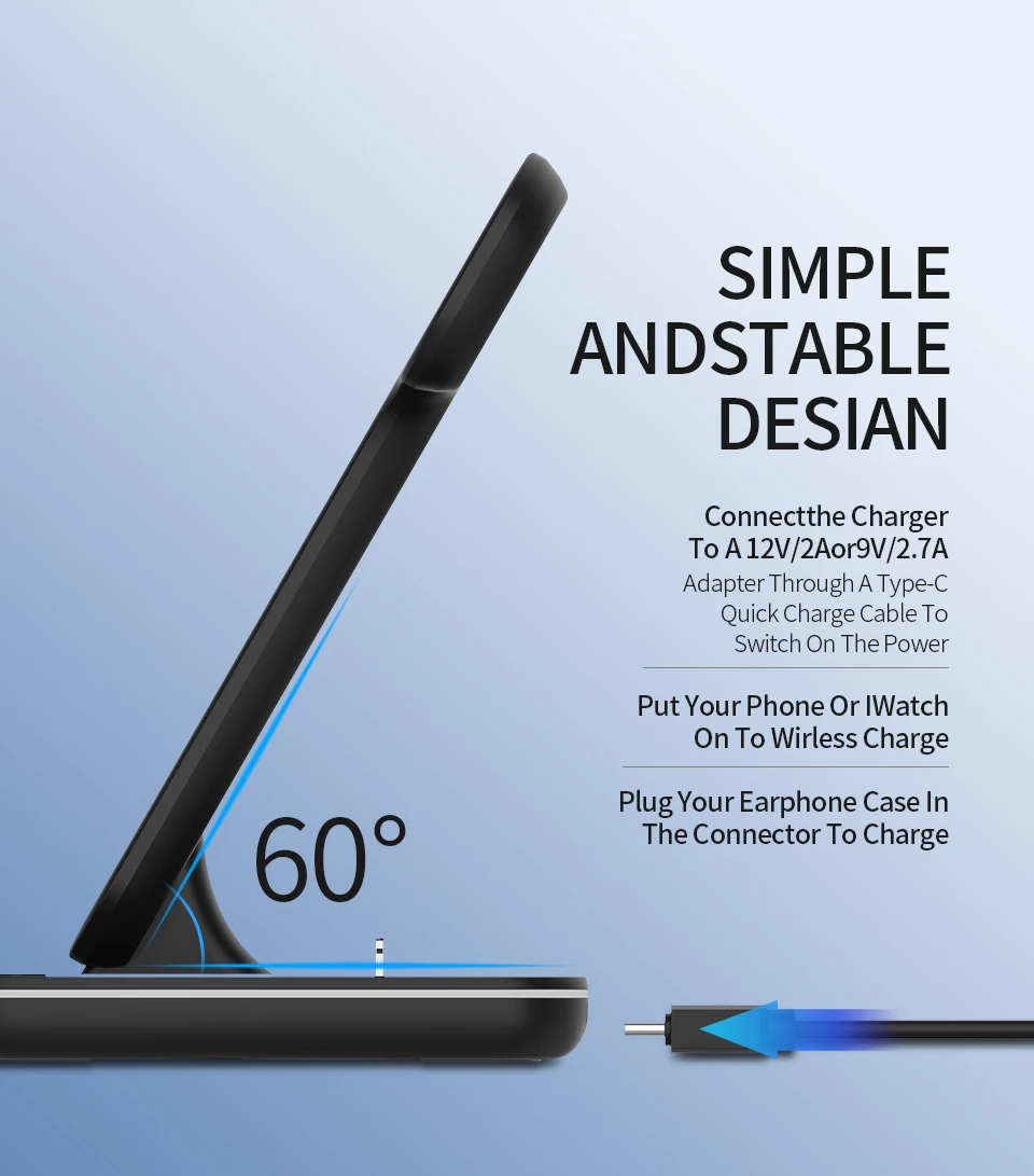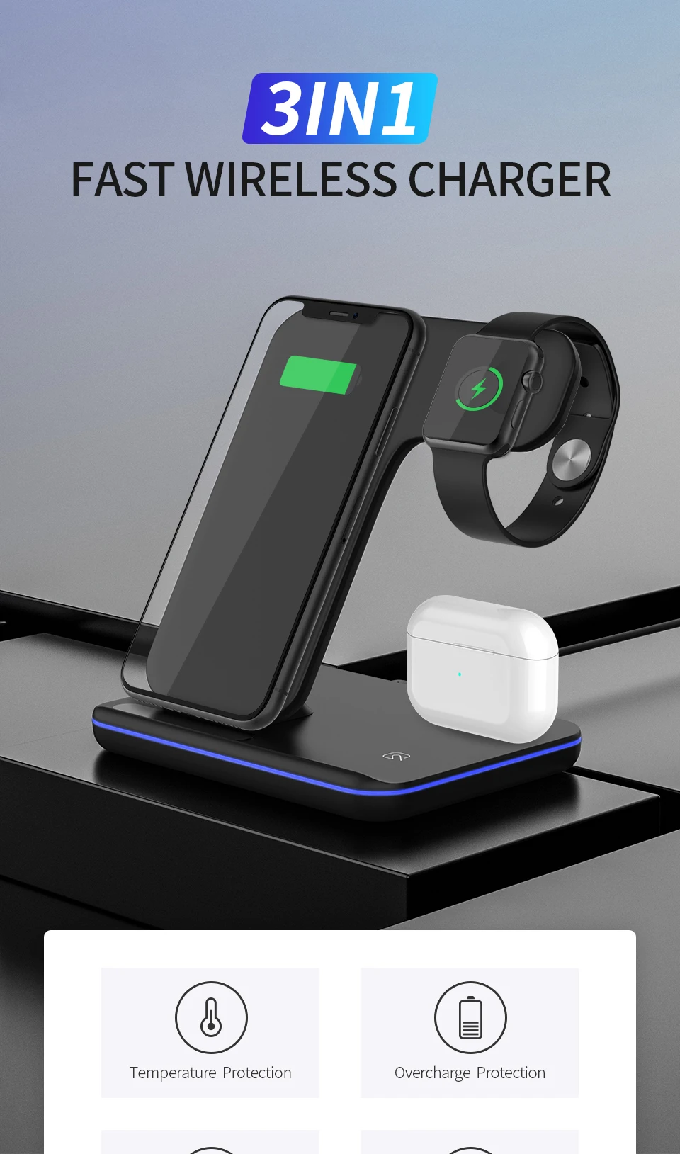 3 в 1 15 Вт быстрая Беспроводная зарядная док-станция для iPhone 13 12 11 XS XR X 8 Apple Watch iWatch 7 6 Airpods Pro Qi зарядная станция