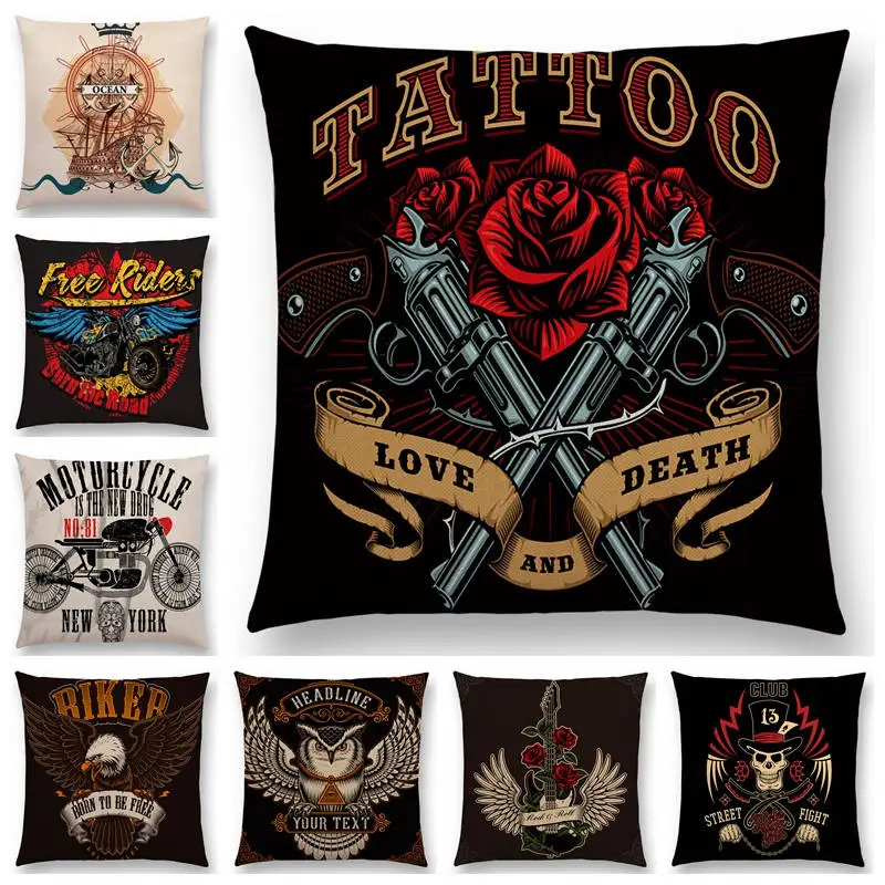 Парусный корабль мотоцикл пистолет Орел Гитара Череп Якорь Акула серфинг олень панк ретро рок хорошая наволочка для диванной подушки Чехол