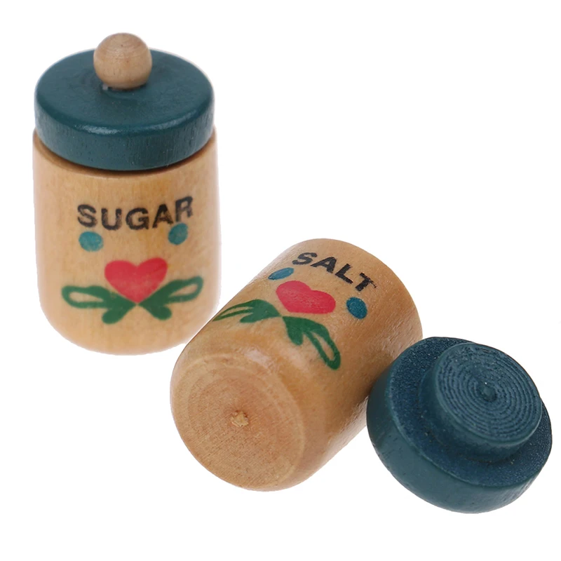 Деревянный горшок для приправ, кукольного домика 1:12 + сахарница, 2 шт.