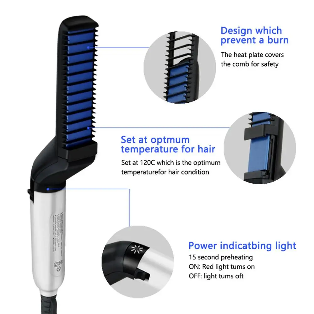Расческа для выпрямления волос Расческа выпрямитель для бороды многофункциональная электрическая расческа для выпрямления бороды Быстрый стайлер для волос для мужчин.