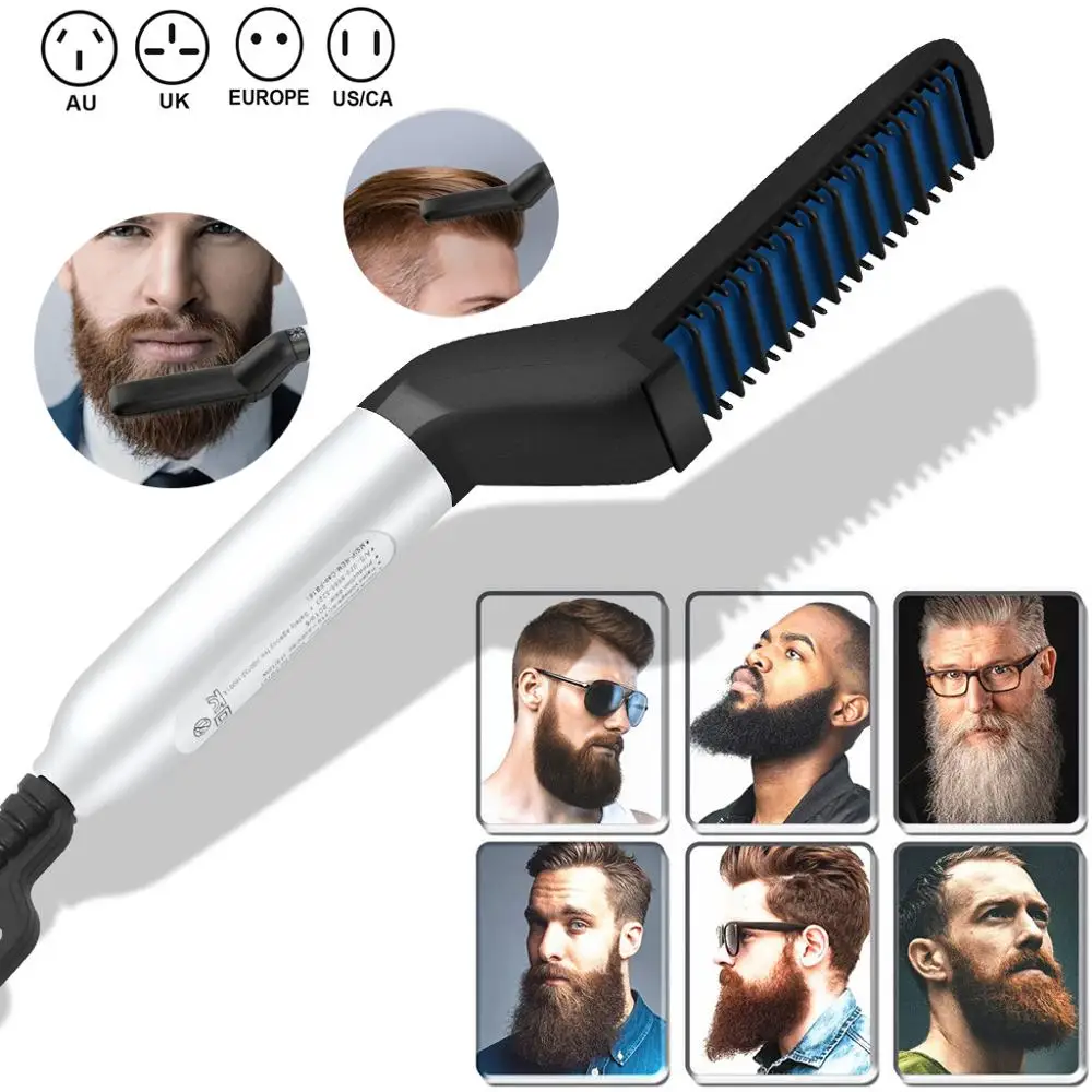 Расческа для выпрямления волос, щетка для выпрямления бороды, многофункциональная электрическая расческа для выпрямления бороды, быстрый стайлер для волос для мужчин