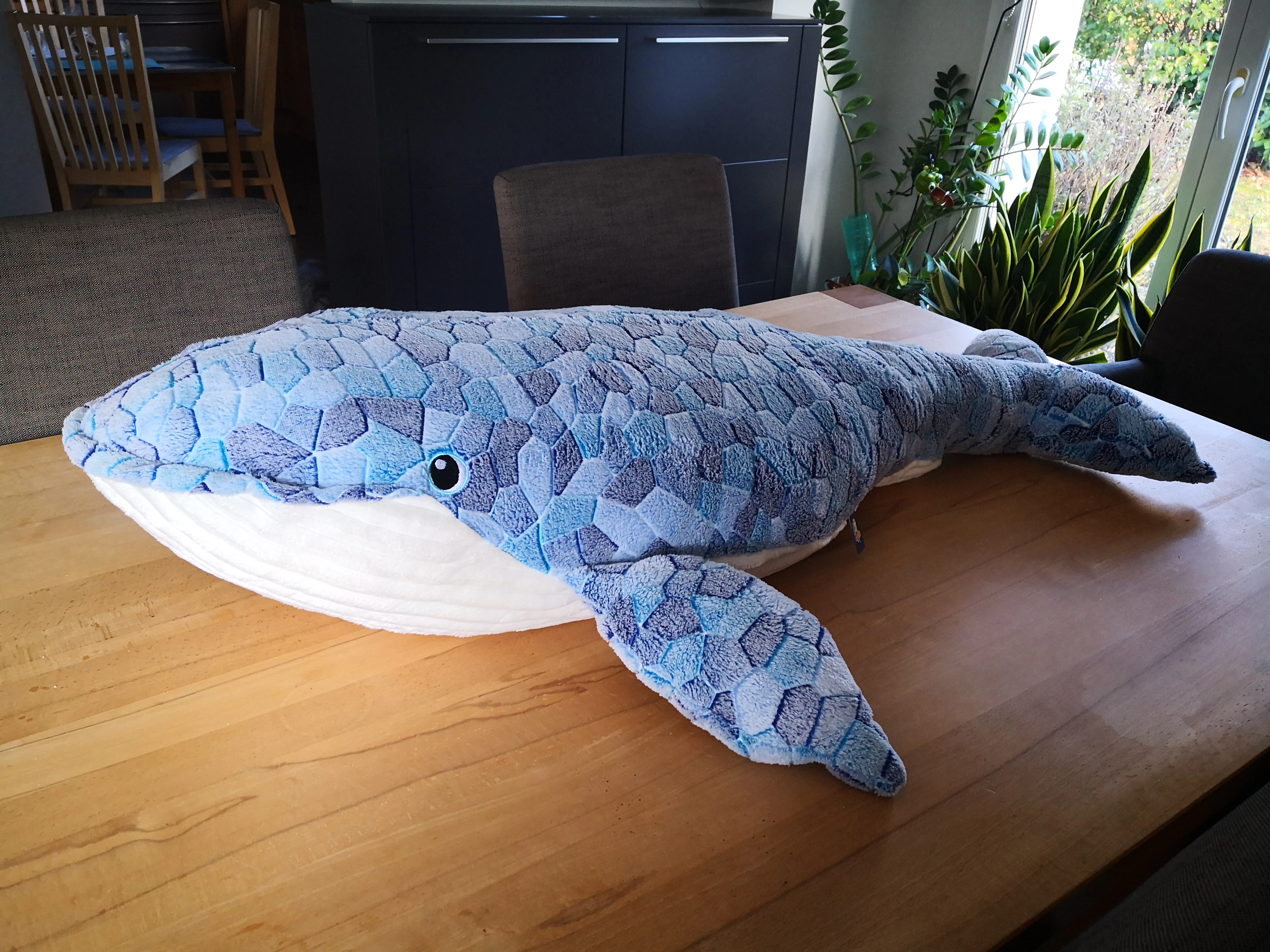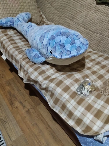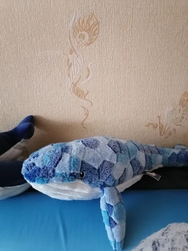 вцелом хорошенький кит. Цвет довольно блёклый, но это видно на фото. Сам "мех" малость свалявшийся будто. Надеюсь сыну понравится. Пришла посылка быстро, меньше месяца