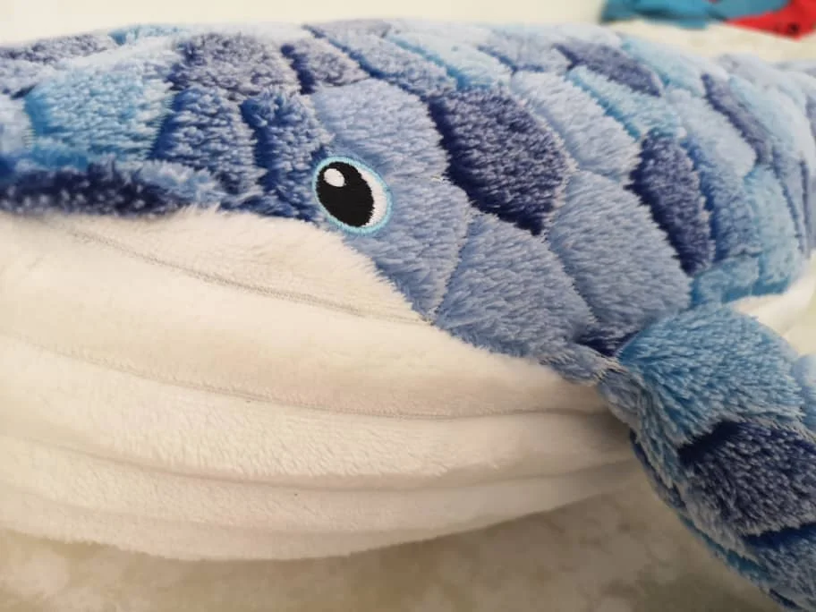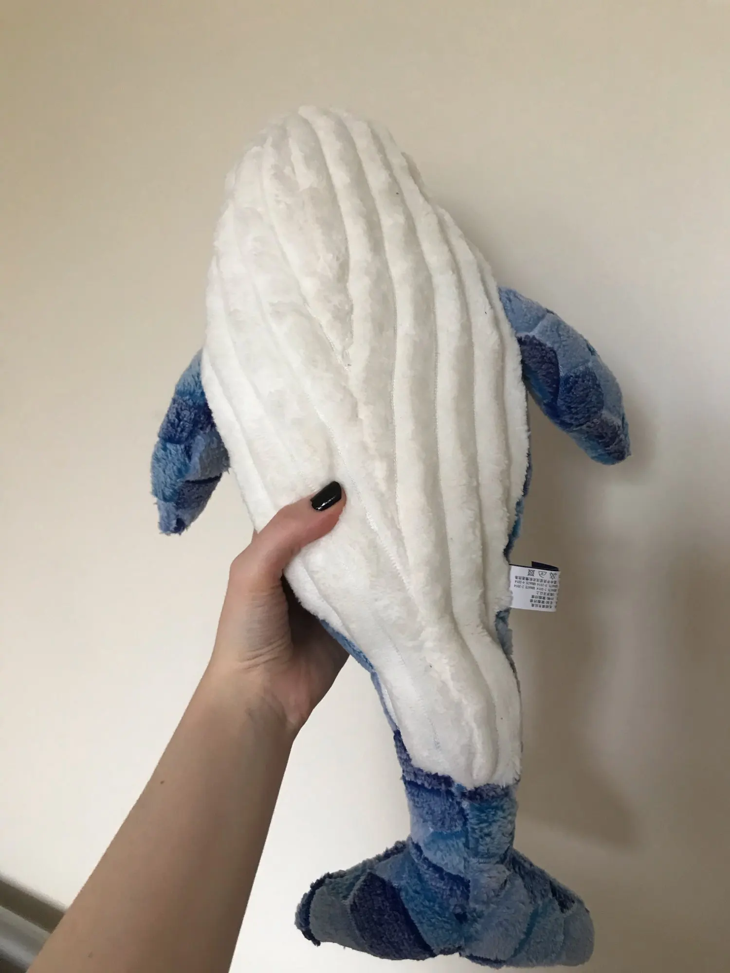 Точное описание продукта, живот Кита очень пушистый с текстурой горбатого кита. Мне действительно нравится другая синяя мозаика на спине Кита