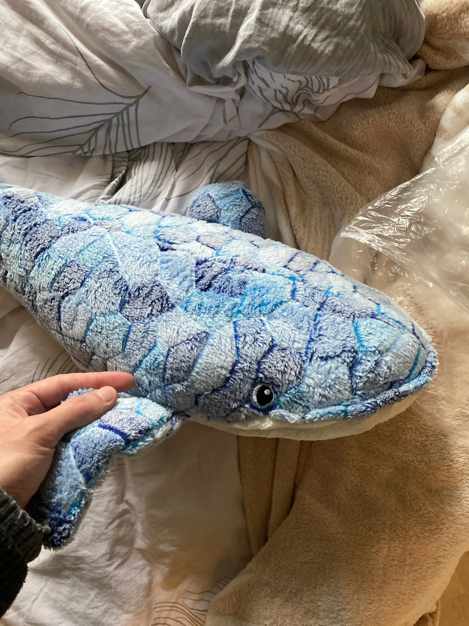 Кит был красивым и набивным. Не скатывается и не сгибается, как другие набивные животные на этом сайте.