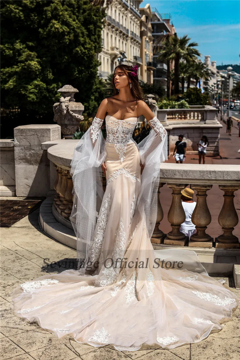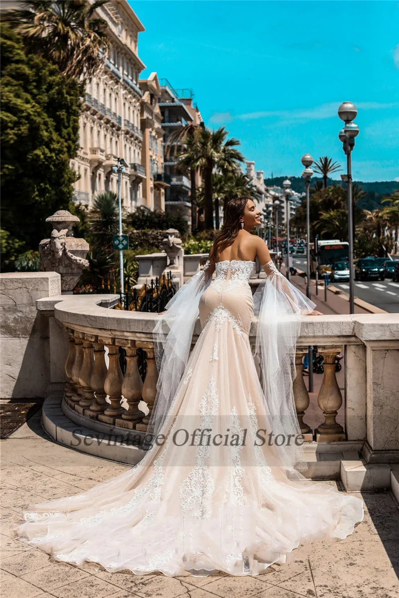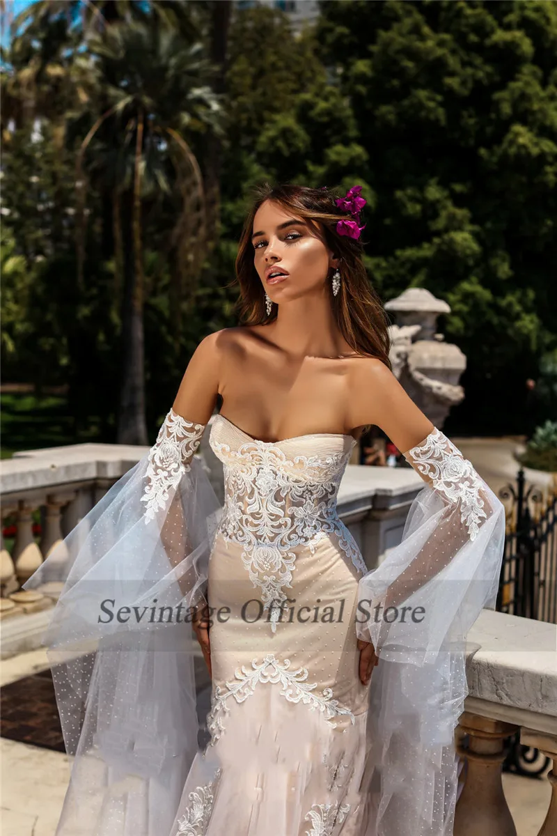 Женское свадебное платье-Русалка Sevintage, кружевное платье с длинным рукавом, в стиле бохо, пляжное платье для невесты, комплект из 2 предметов