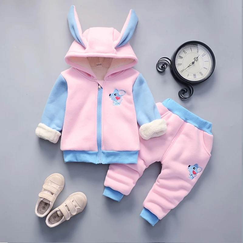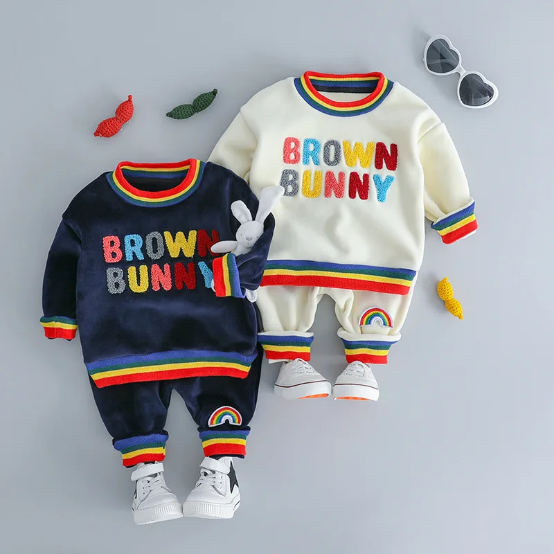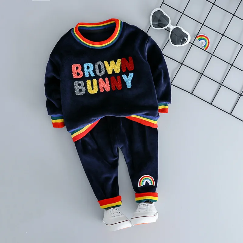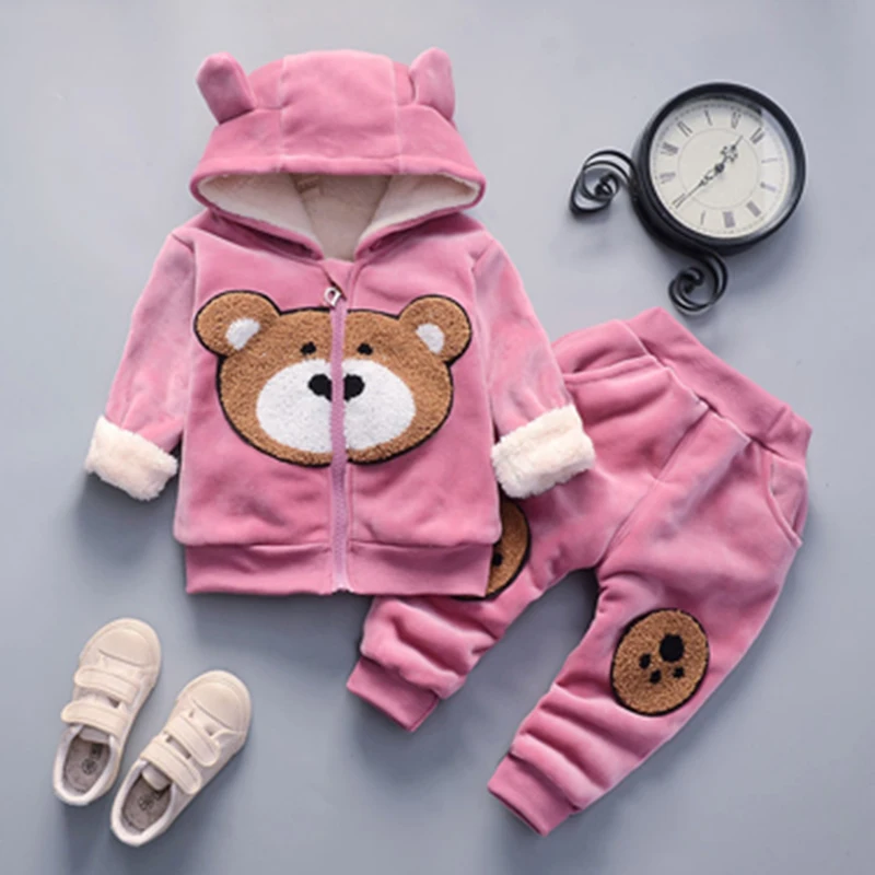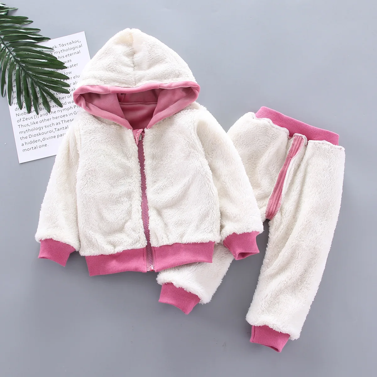 Комплекты одежды для малышей зимняя плотная плюшевая хлопковая одежда толстовка + штаны для маленьких девочек костюм из 2 предметов осенняя одежда детский спортивный костюм
