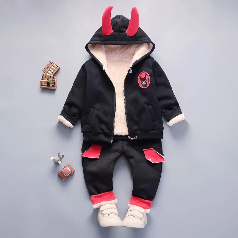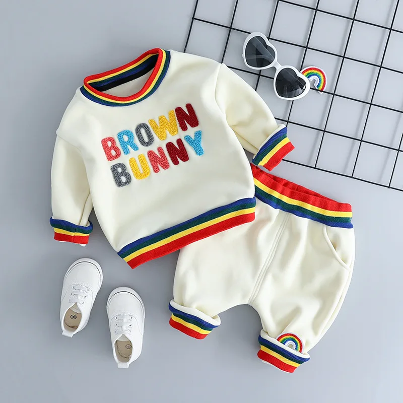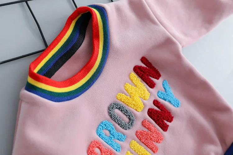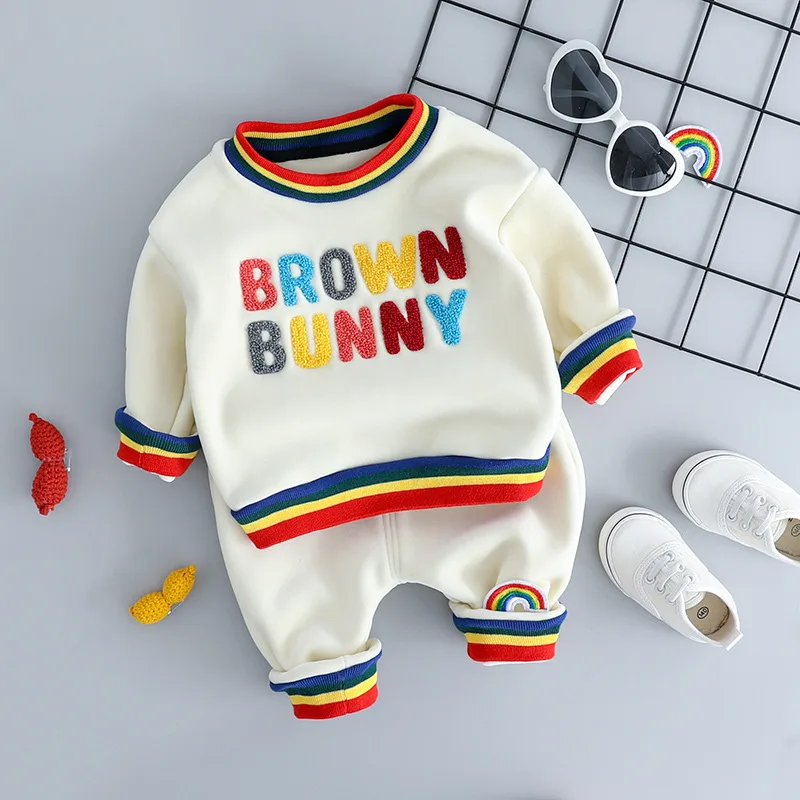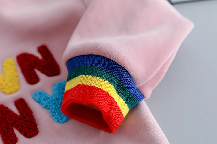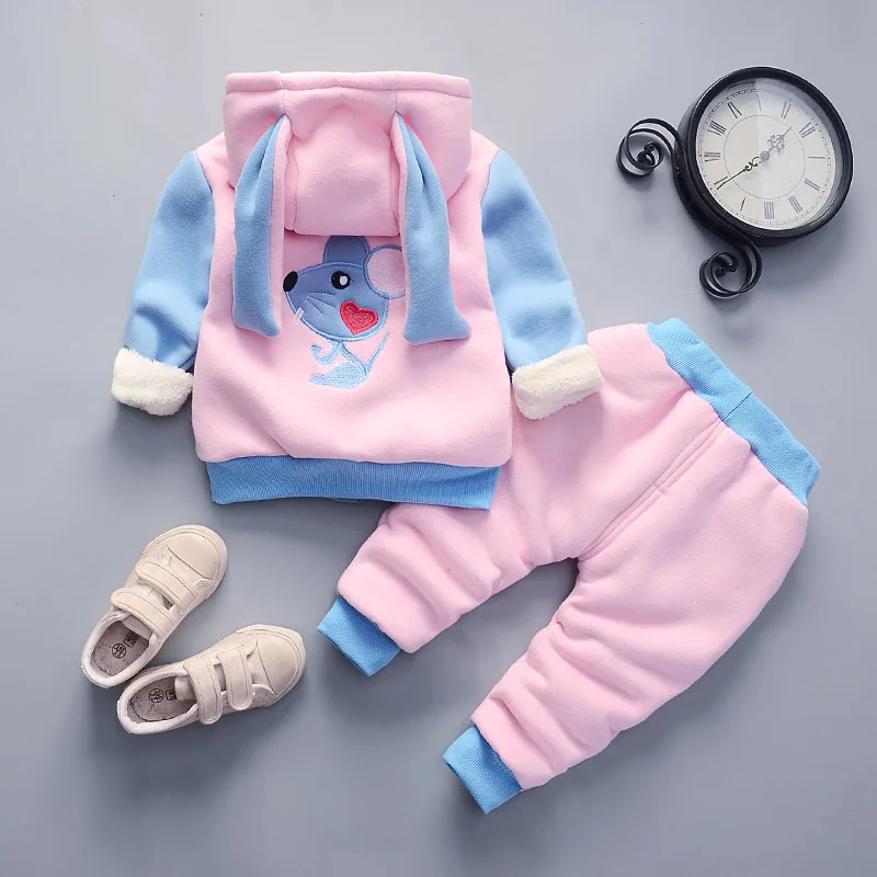 Комплекты одежды для малышей зимняя плотная плюшевая хлопковая одежда толстовка + штаны для маленьких девочек костюм из 2 предметов осенняя одежда детский спортивный костюм