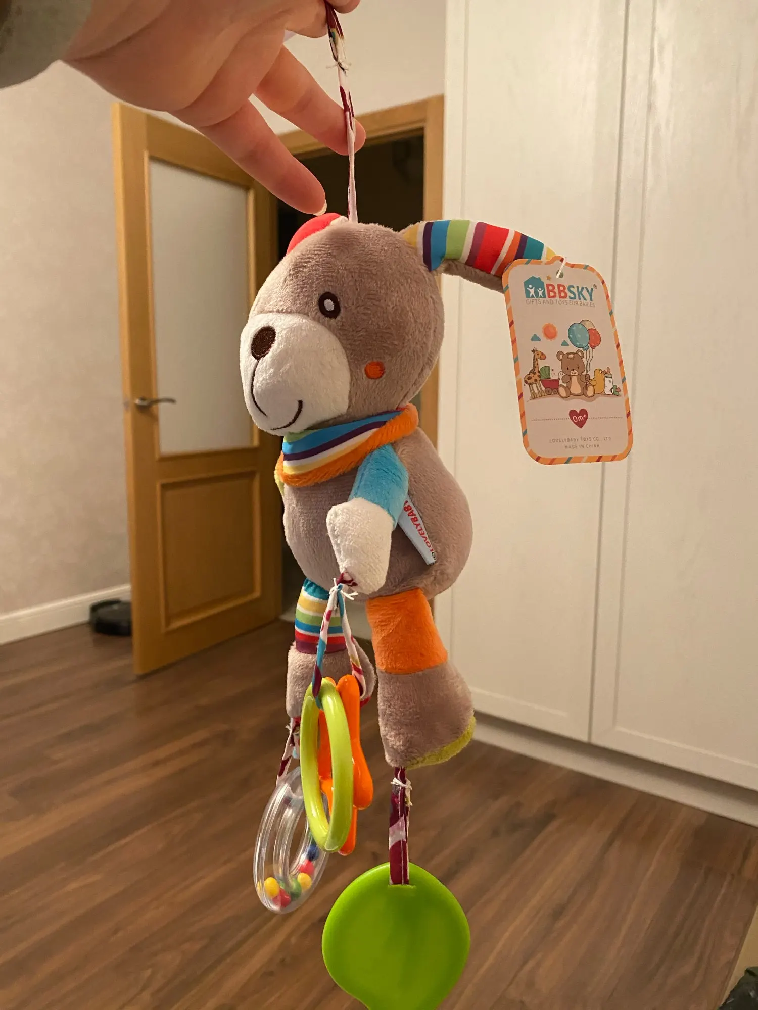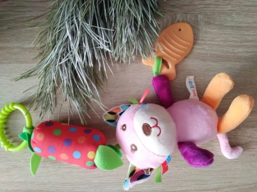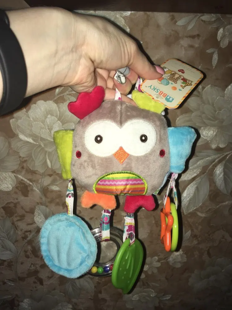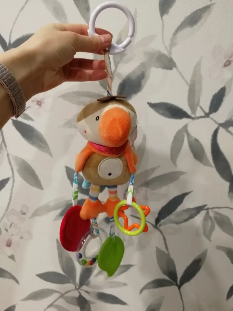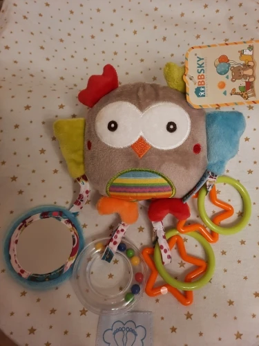 Хорошая подвесная игрушка для коляски, автокресла, кроватки. Шумит, бренчит, шуршит, то что надо, для того, чтобы привлечь внимание ребенка. Выполнена хорошо, запаха нет. Доставка 2 недели до Московской области.
