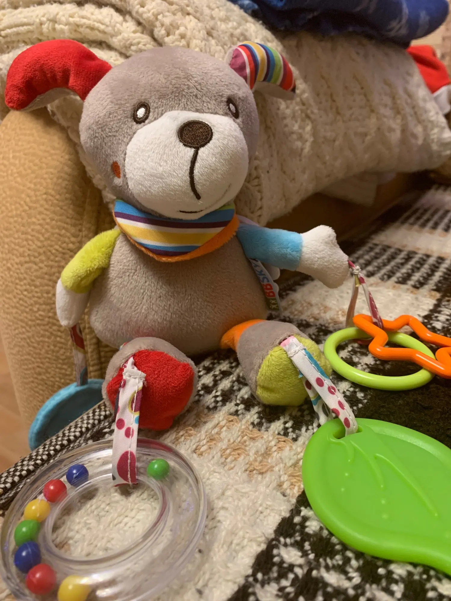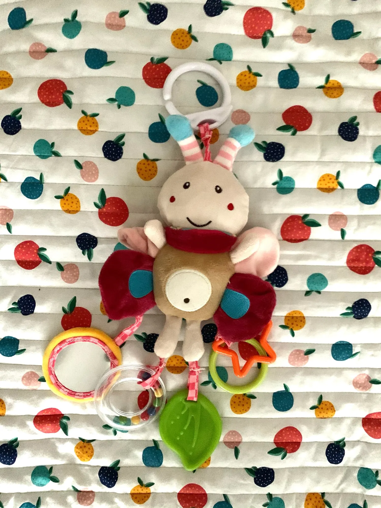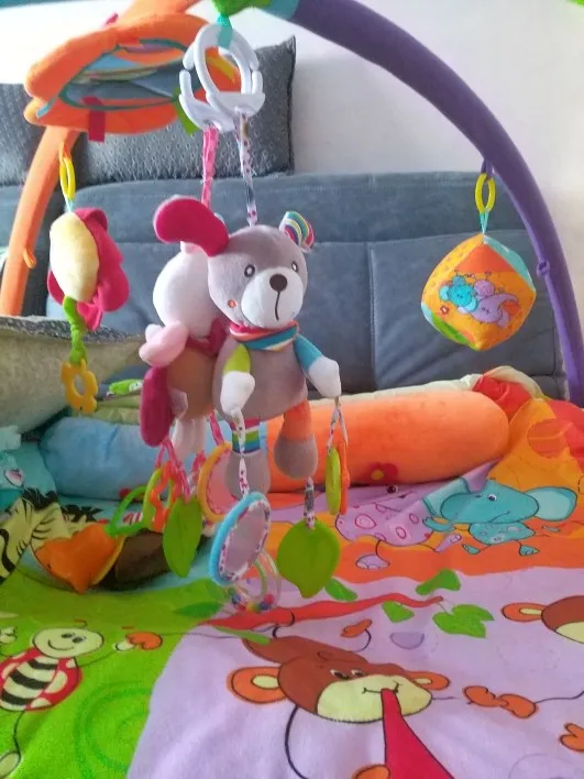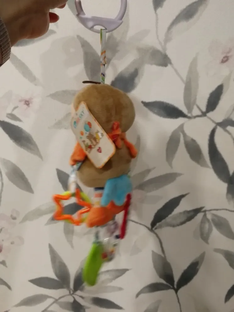 Хорошая подвесная игрушка для коляски, автокресла, кроватки. Шумит, бренчит, шуршит, то что надо, для того, чтобы привлечь внимание ребенка. Выполнена хорошо, запаха нет. Доставка 2 недели до Московской области.