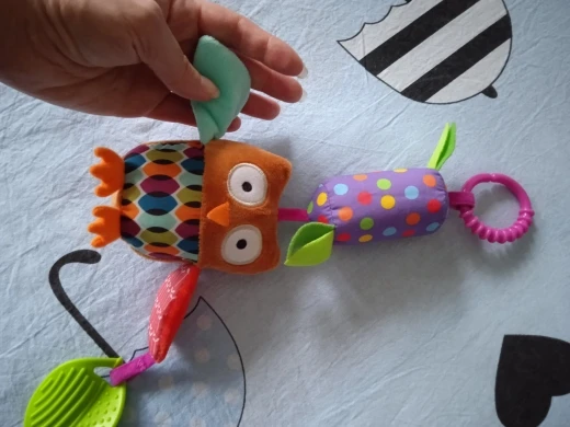 Игрушка хорошая, сделана качественно. Пришла во время. К игрушке и доставке притенщий нет. Ребёнку (7 месяцев) правда она не интересна. Может позже будет играть с ней