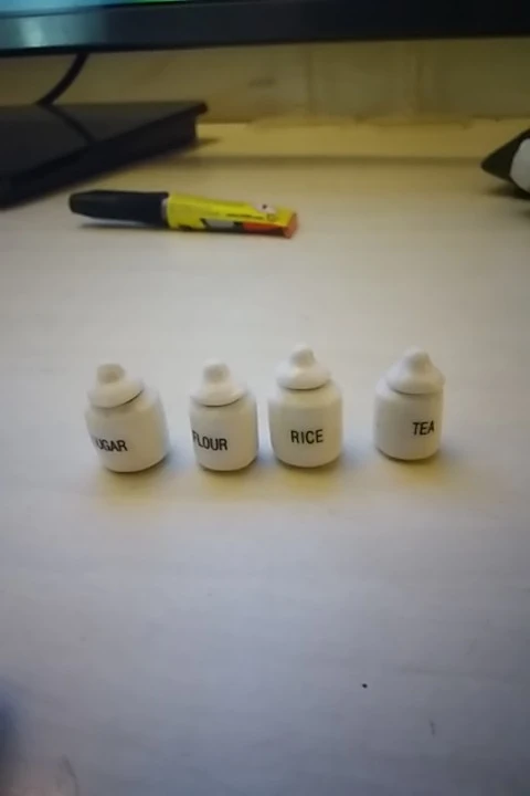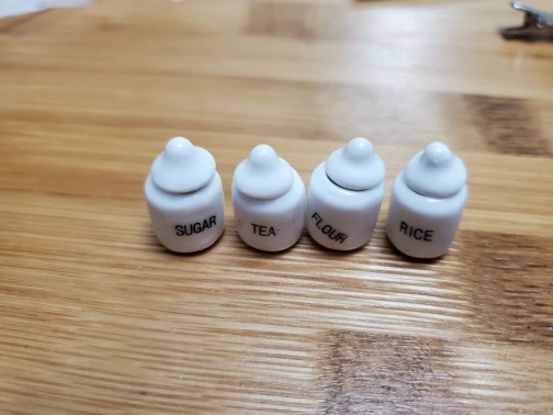 симпатичные керамические баночки, но надписи немного неровные. для декора кукольной кухни отлично