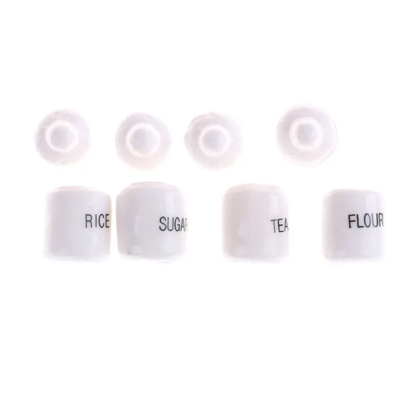 Кукольный дом 4 шт. 1:12, миниатюрные белые керамические баночки для хранения, кухонные аксессуары, классическая мебель для ролевых игр, детские игрушки