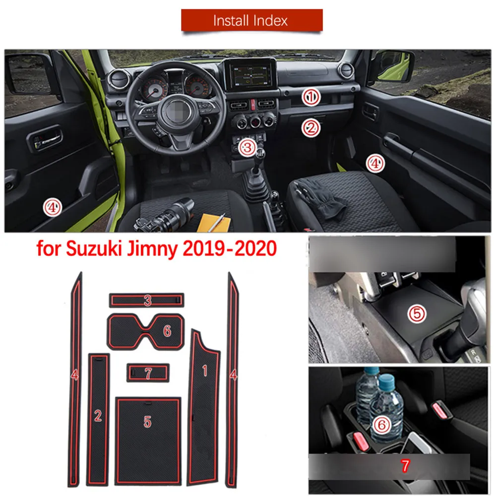 Для Suzuki Jimny Sierra JB64 JB74, 2019, 2020, резиновый противоскользящий коврик, дверной паз, подстаканник, слот для ворот, подушка, автомобильные аксессуары