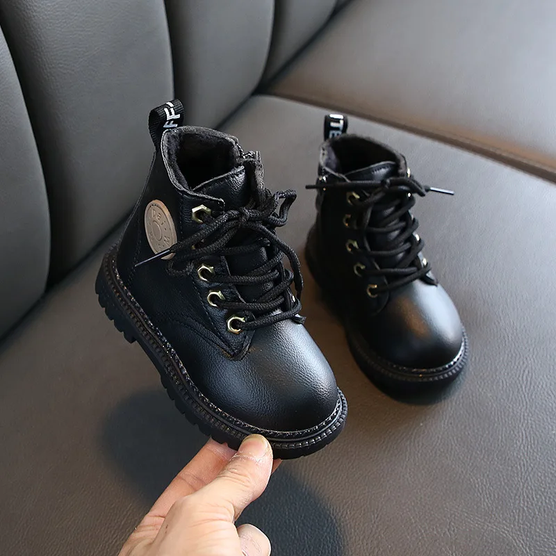 Плюшевые Ботинки Martin для девочек Новинка Зима 2021 модные детские универсальные короткие ботинки черные ботинки для мальчиков для детей среднего и большого возраста