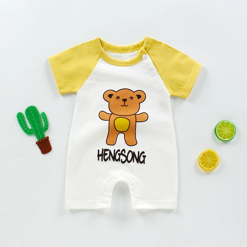 Детский хлопковый комбинезон с коротким рукавом, с мультяшным принтом