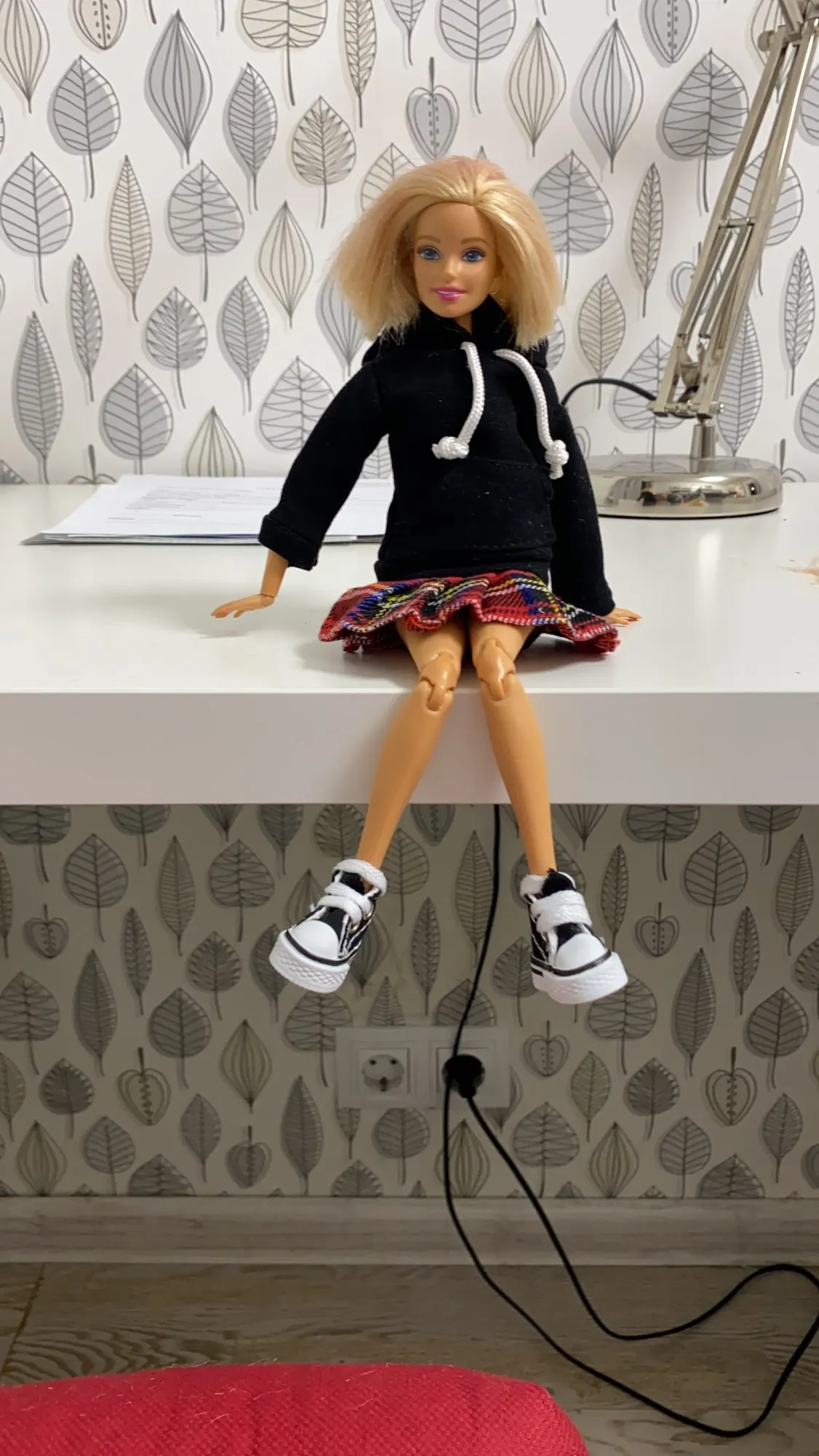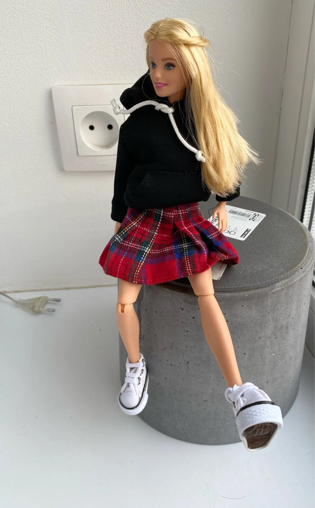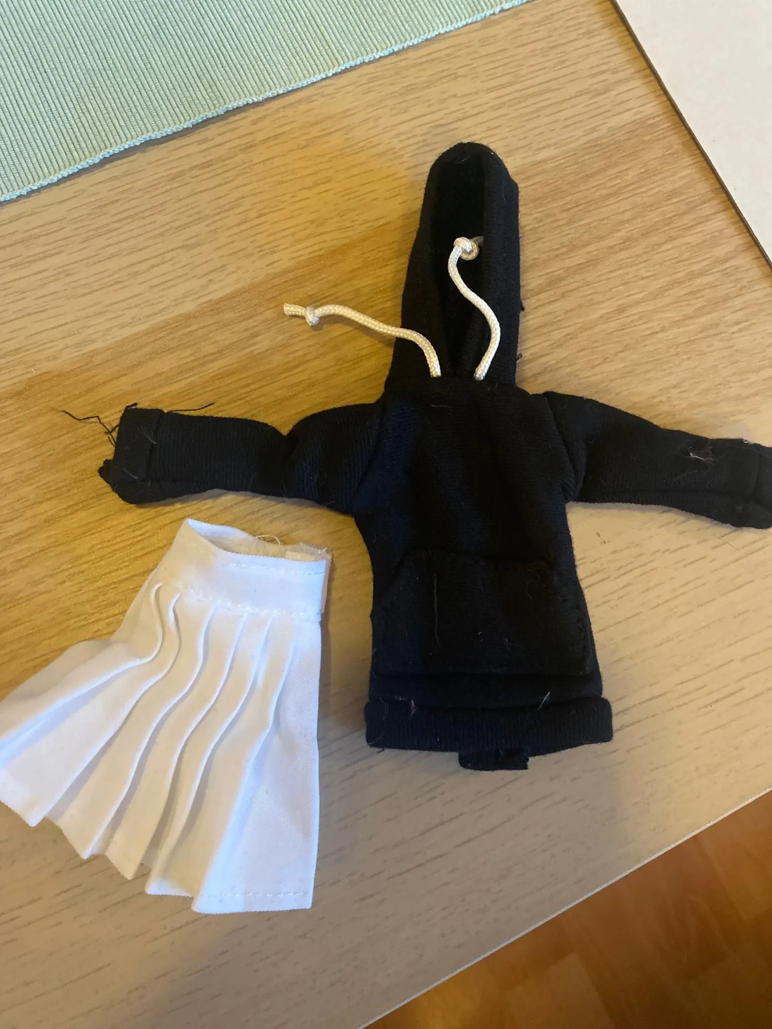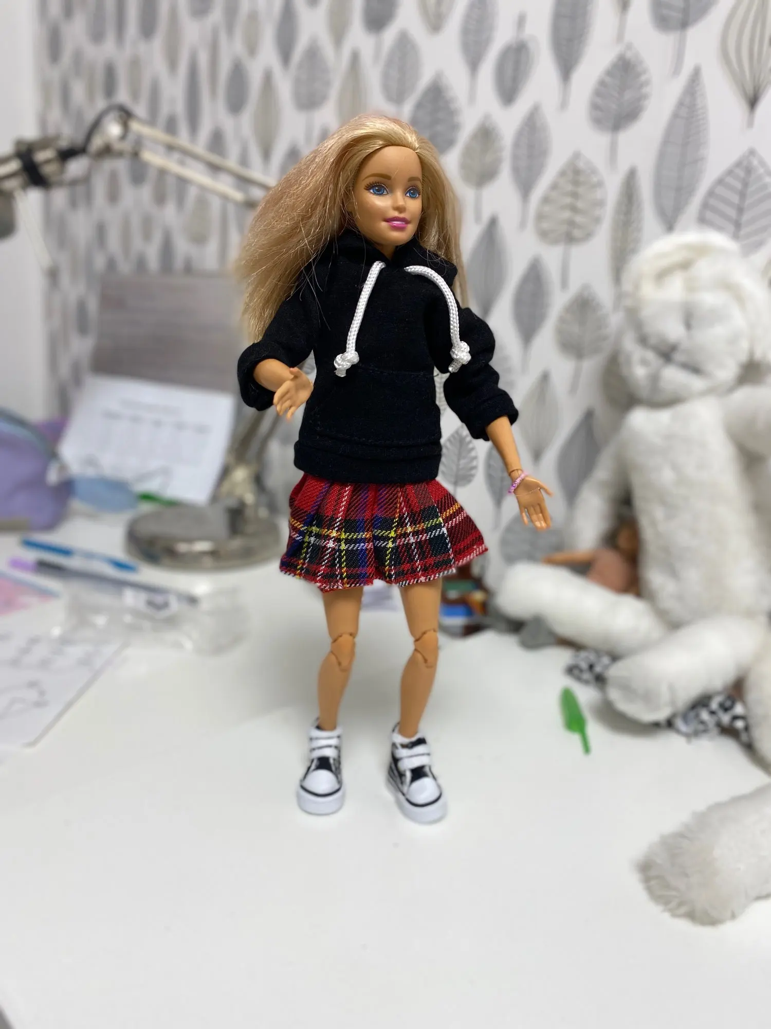 Худи отличная, подошла по размеру на Барби, качественная, сзади на липучке. А юбка оказалась маленькая в талии, липучка до конца не застегивается.