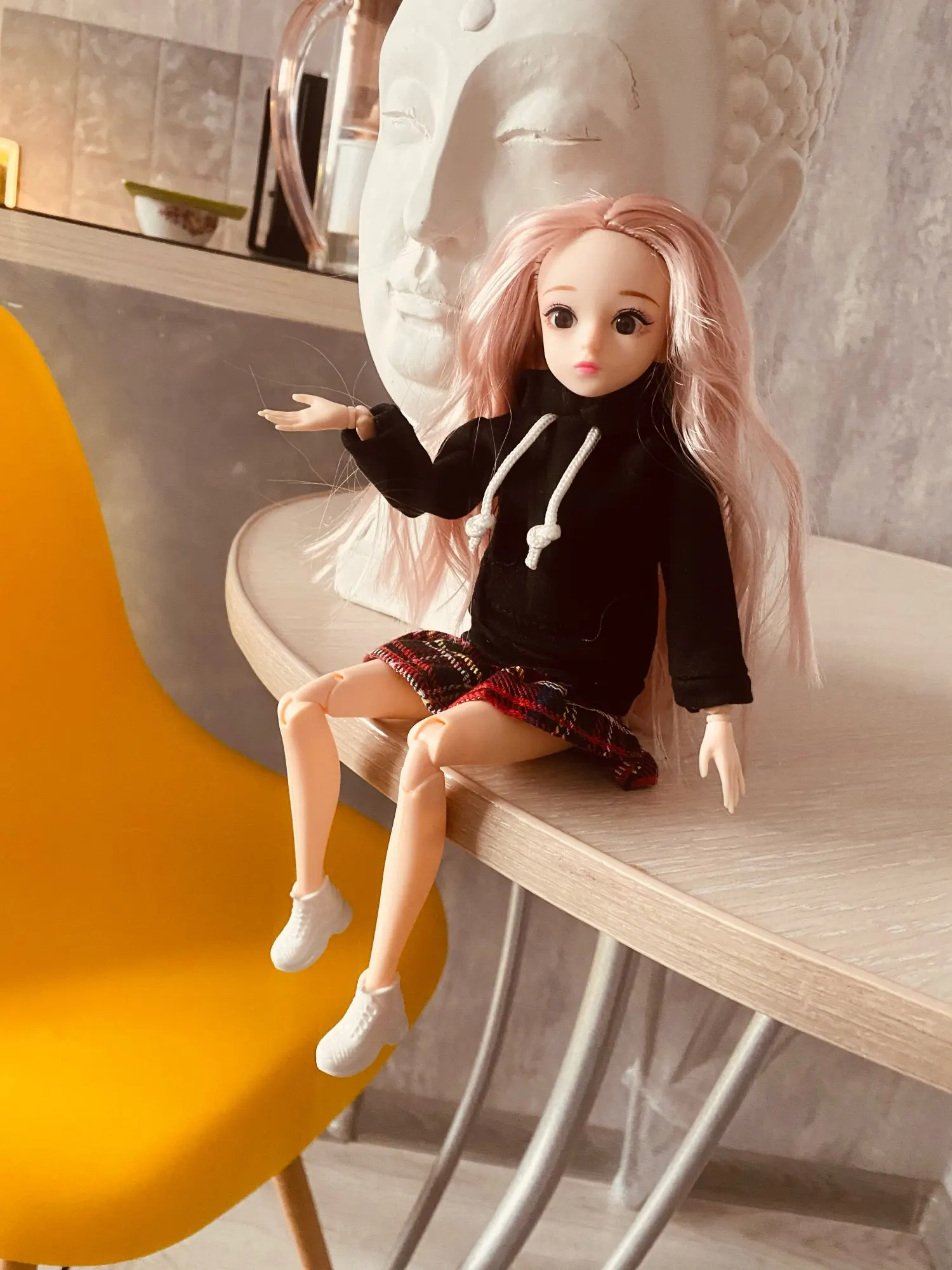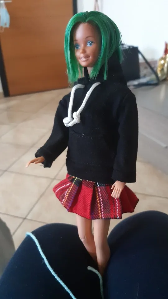 Для Барби 1959 юбка узкая в талии, толстовка ок. Надевала на азиатку. Но все вместе смотрится хорошо.
