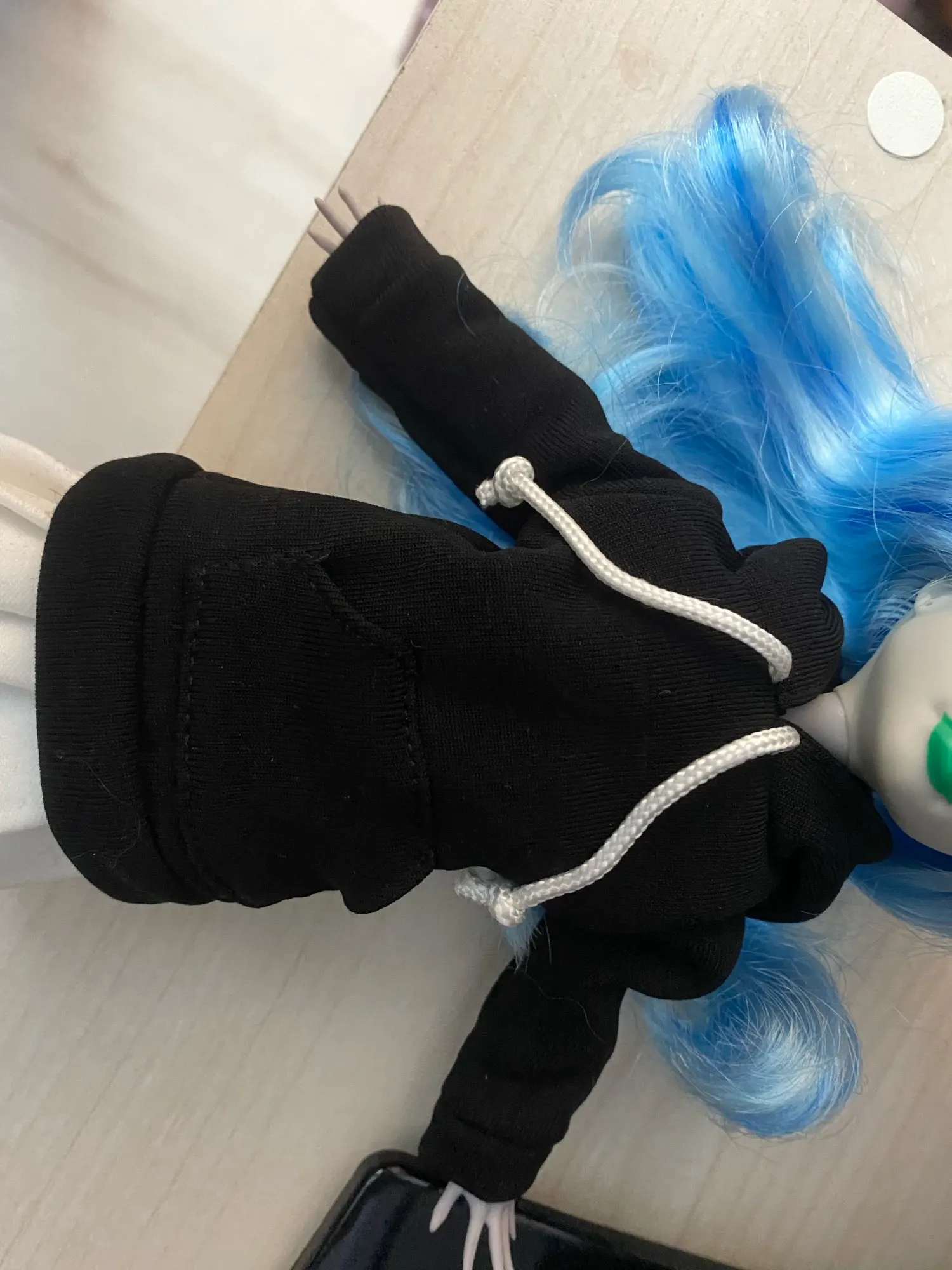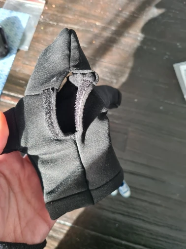 Костюм для куклы просто шикарный. Сшито все аккуратно и ровно, никаких торчащих ниток. У кофты застёжка на спине и есть прорезь между липучкой и капюшоном, для волос куклы. Так же очень приятная на ощупь ткань, но к ней всё прилипает немного. Настоящий карман. Села идеально на Барби свободные движения.