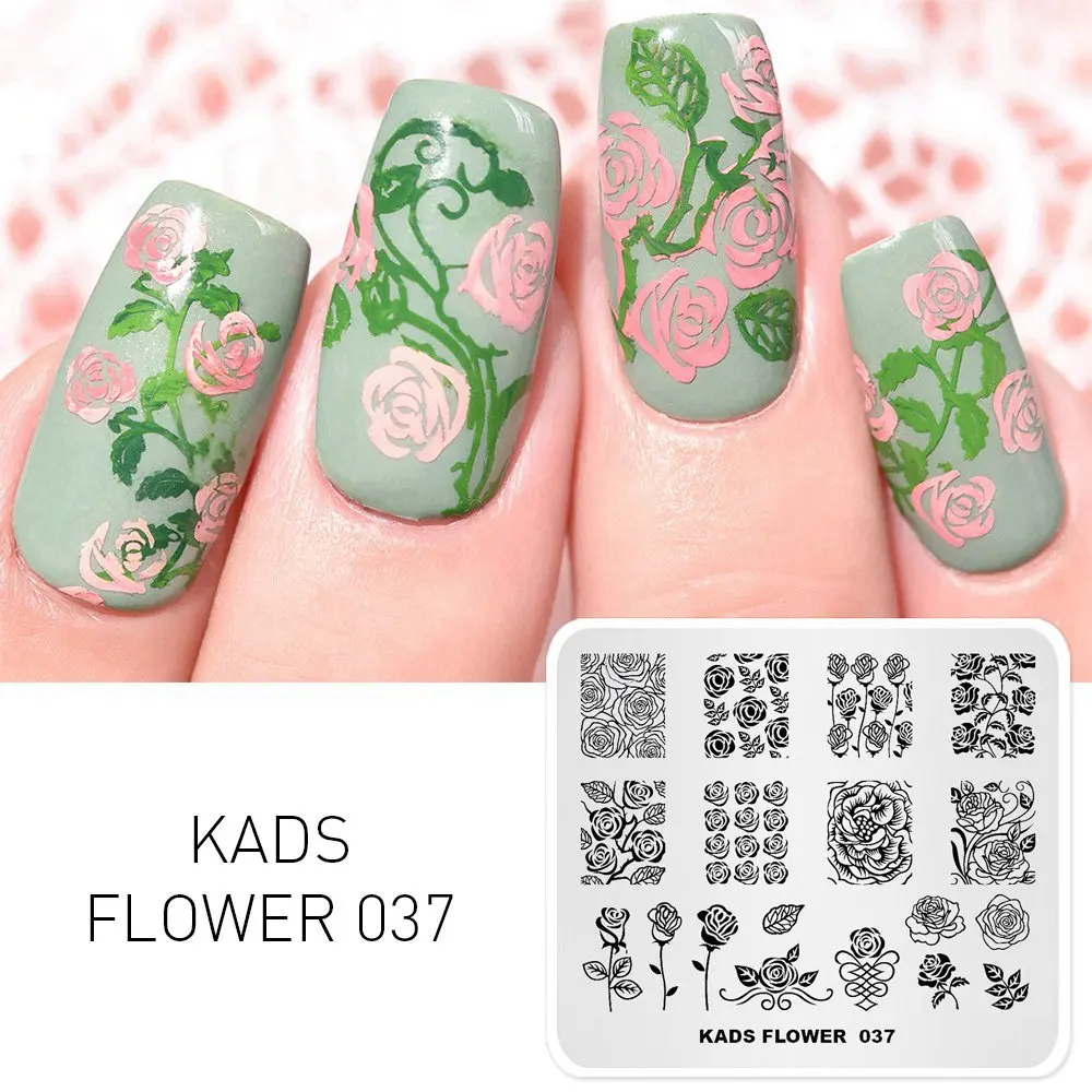 KADS пластины для штамповки ногтей геометрический клетчатый узор Дизайн маникюрный штамп шаблон для лака для ногтей изображение трафаретная пластина