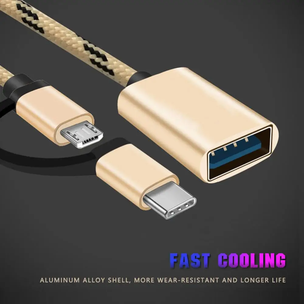 2 в 1 нейлоновый кабель с оплеткой USB 3,0 OTG адаптер Micro USB Type C адаптер для синхронизации данных для Samsung Xiaomi MacBook USB Type-C Micro OTG