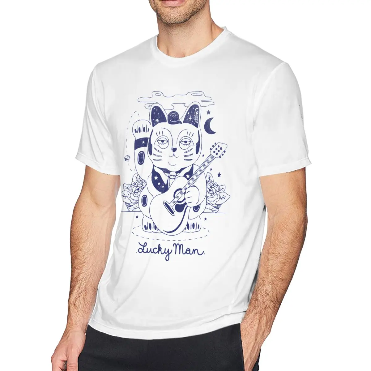 Футболка мужская хлопковая с рисунком счастливого кота и коротким рукавом