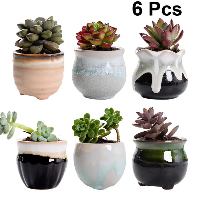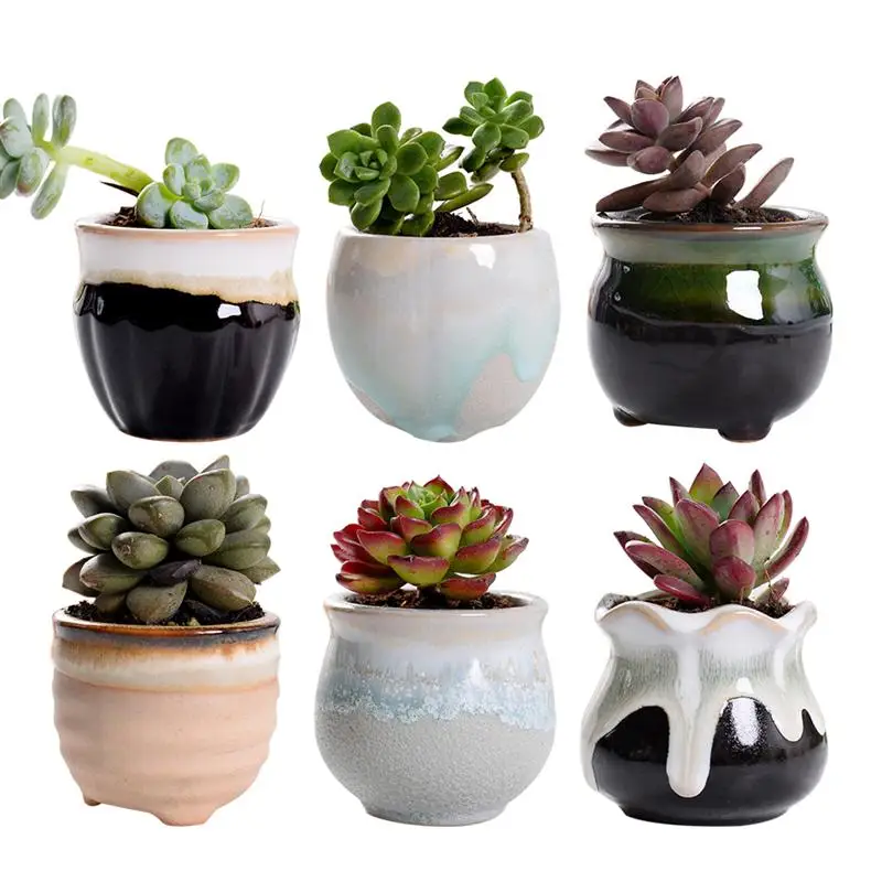 Керамический горшок для растений-суккулентов, 6 шт., с переменным потоком, для дома, комнаты, офиса рассады, горшок для растений без растений