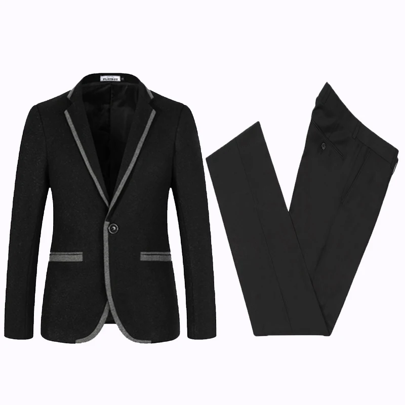 Двойные груди черные костюмы Мужские приталенные наряды одежда для ...