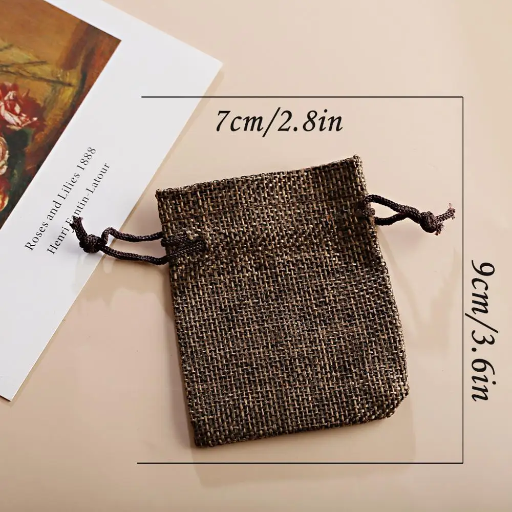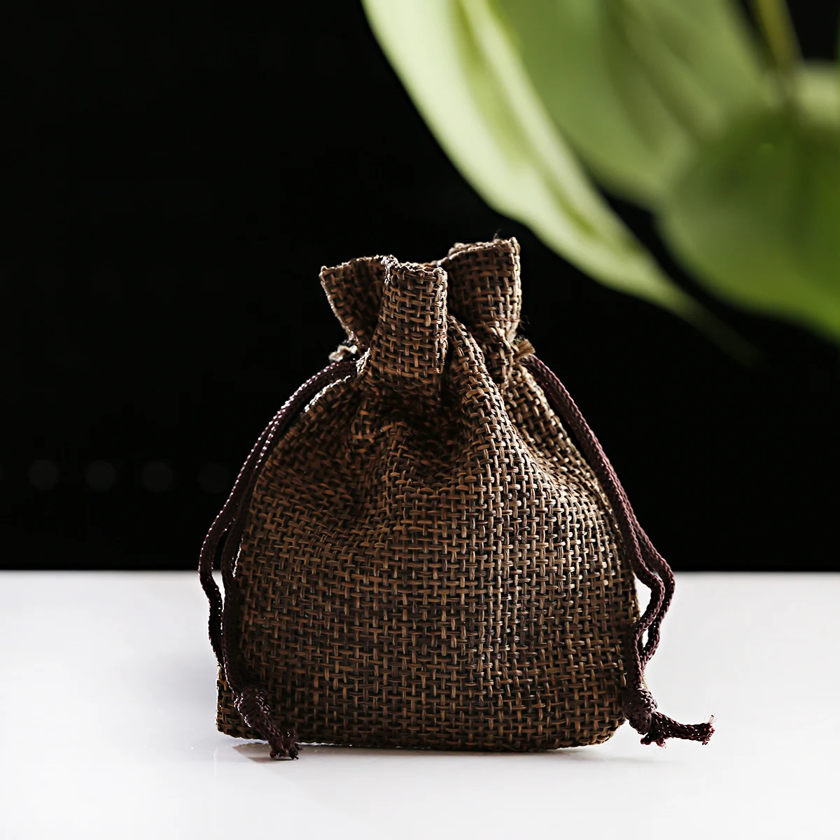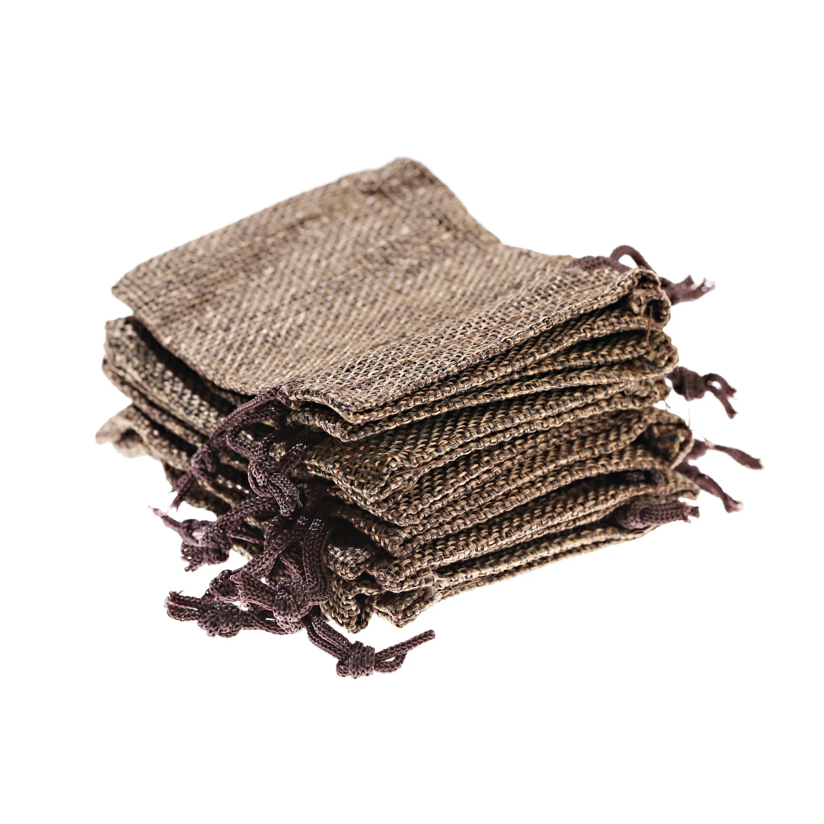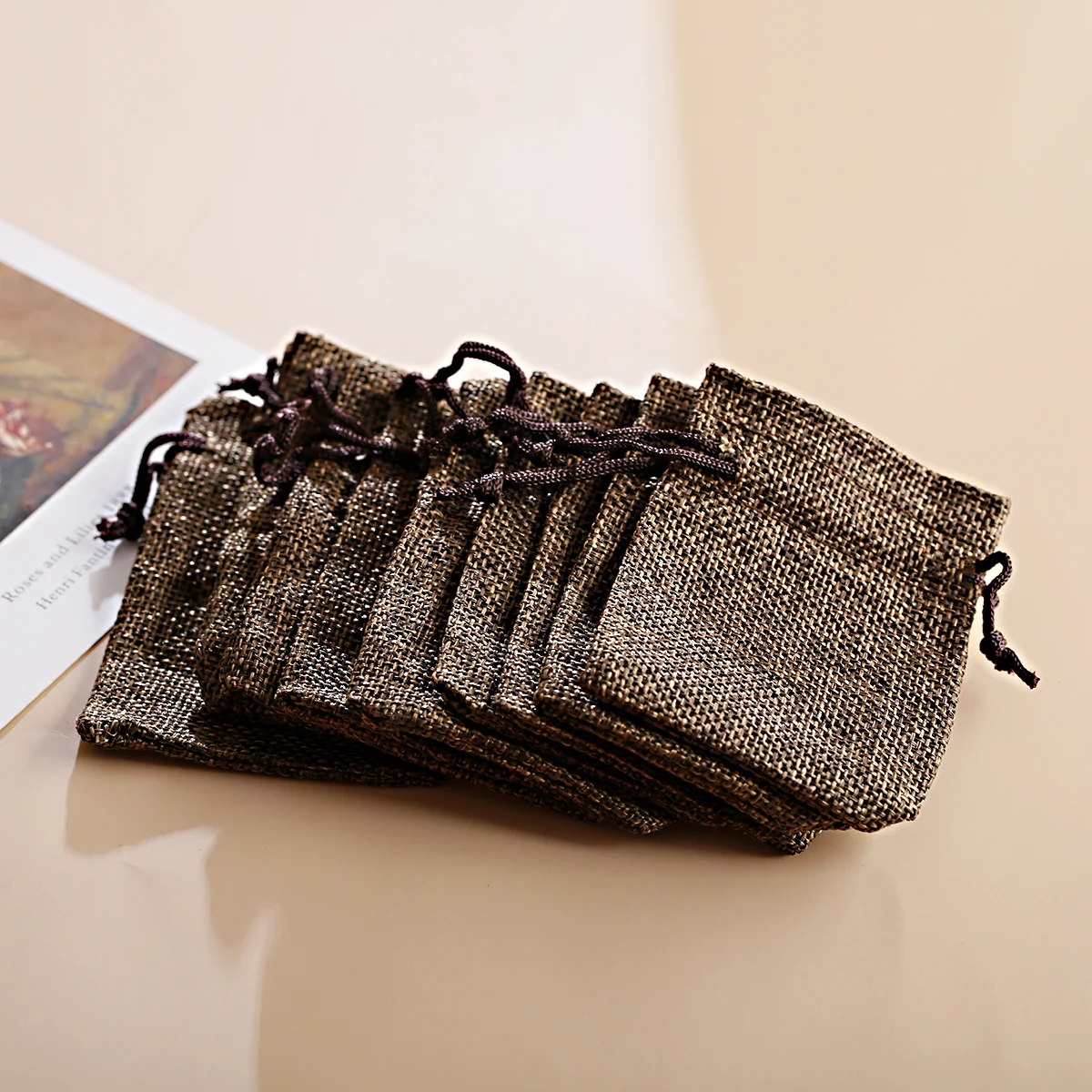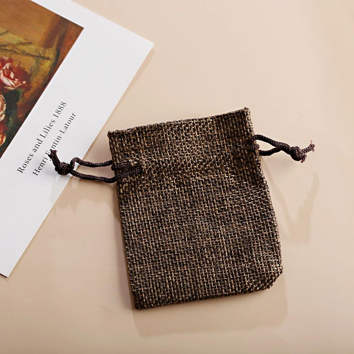 Коричневый льняной мешок, мешочек на шнурке для упаковки ювелирных изделий, свадебный подарочный мешок