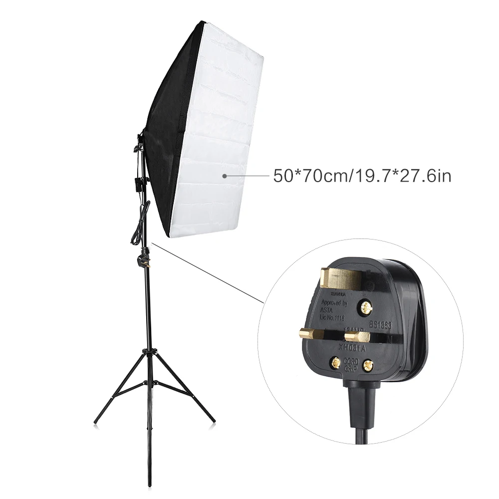 Особенности:Супер яркие лампочки мощностью 135 Вт обеспечивают оптимальное освещение при цветовой температуре 5500K.Выдвижная Высококачественная осветительная стойка, 3 секции, максимальная длина 2 м, идеально подходит для ваших потребностей.Световые стойки поставляются с дизайном 3в1, могут монтироваться лампы, зонтик или софтбокс.Софтбокс 50*70 см с держателем лампы, который легко демонтировать.Софтбокс поставляется со складной рамкой, удобной для хранения.С прочными зажимами и чехлом для переноски, удобными для использования.Технические характеристики:-Осветительной стойкиМатериал: алюминиевый сплавРегулируемая длина: 60 см до 200 смРазмер товара: 60*5*5 см/23,6*2,0 * 2.0inВес изделия: 786 г/27,7 унций-ЛампаВатты: 135WУльтратонкое естественное освещение CRI: 80 +Цветность света: белыйЦветовая температура: 5500K ± 100Диапазон напряжения: 220 ~ 240 ВРазмер товара: 25,5*8*8 см/10,0*3,1*3,1 дюймаВес изделия: 208 г/7,3 унций-СофтбоксСтандарт Вилки: ЕСРазмер мягкой коробки: 50*70 см/19,7*27,6 дюймаДлина стороны: 51 см/20,1 дюймаВес изделия: 534 г/18,8 унций-ЗажимМатериал: пластикМакс. Расстояние открытия: 5 см/1,9 дюймаРазмер товара: 11*7,5*2,8 см/4,3*3,0*1,1 дюймаВес изделия: 37g/1,3 ozРазмер упаковки: 21,5*21*71 см/8,5*8,3*28 дюймовВес упаковки: 4277 г/150,87 унцийВ комплект входит:2 * лампы2 * осветительная стойка2 * Softbox6 * зажим1 * сумка для переноски