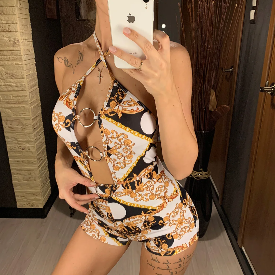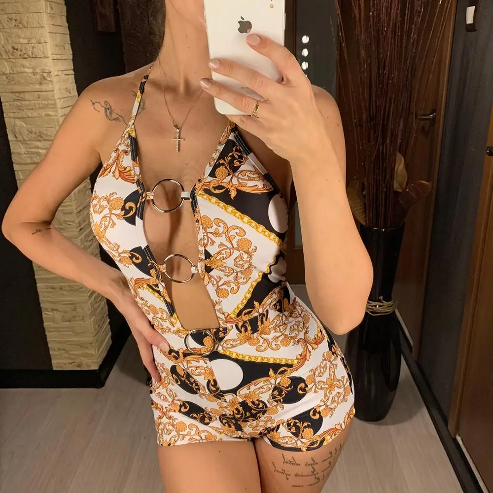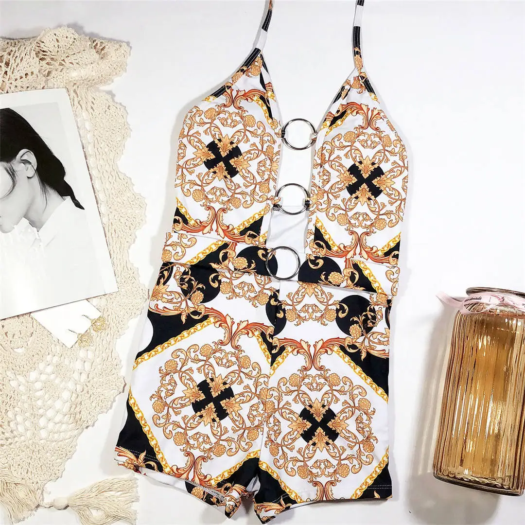 2021 сексуальный цельный купальный костюм с принтом и вырезами на ж...