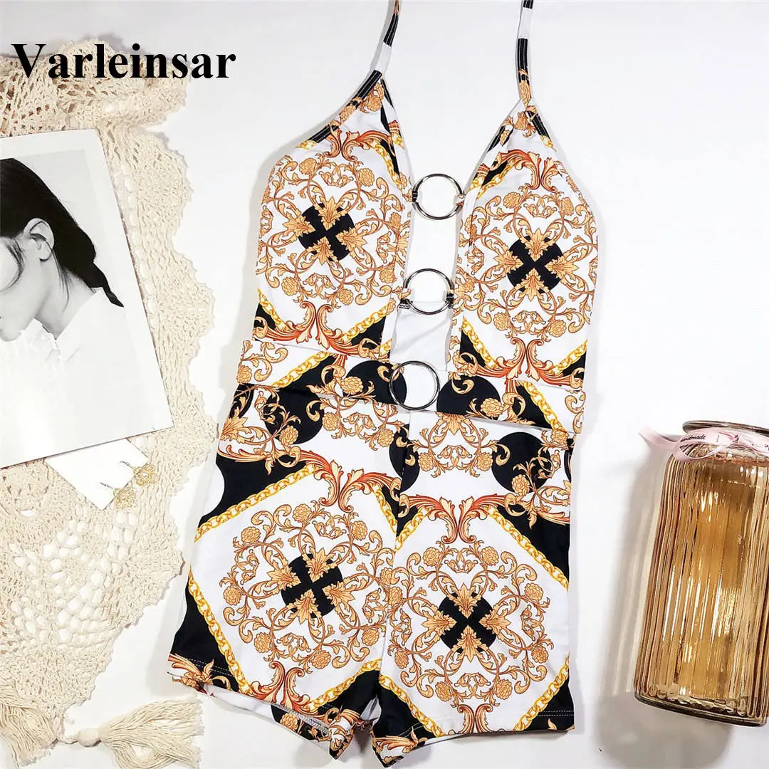 Новинка, сексуальный цельный купальник с v-образным вырезом и высок...