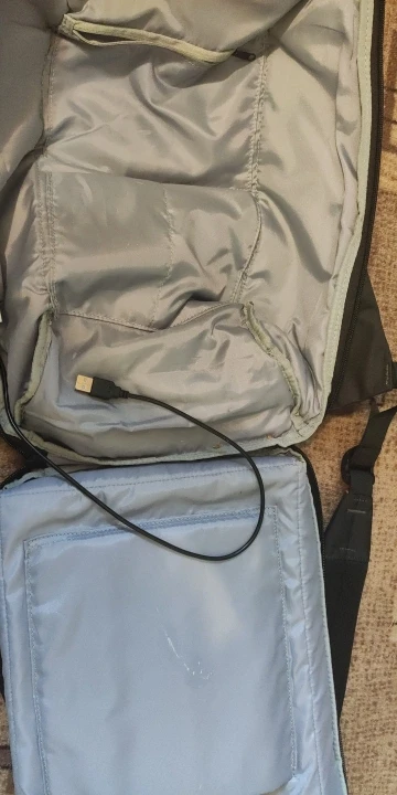 Рюкзак отличный, интересный дизайн. Ноутбук 15,6 дюйма влезает в свое отделение плотно. Есть карман под замком, и два открытых внутри. Кабель для зарядки телефона. В подарок продавец положил коврик для мыши. Продавец общительный, охотно ответил на мои вопросы. Доставка заняла чуть меньше недели с момента оплаты. Рекомендую.