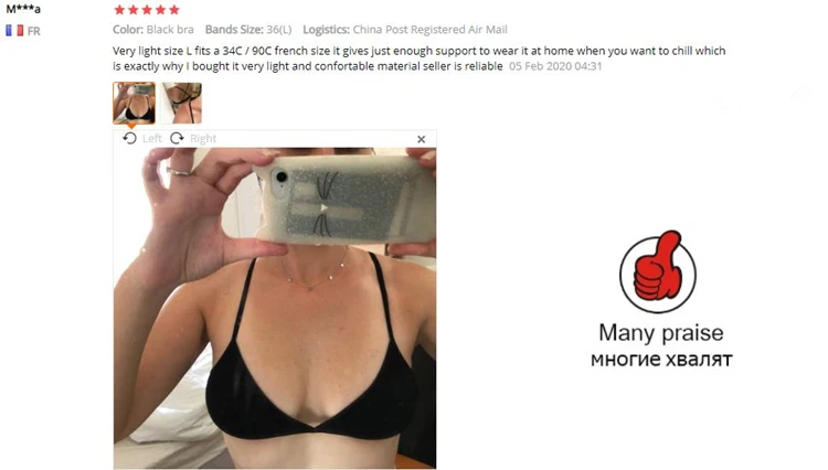 Товар, как описано, и измерения были точными. Я заказал Средний размер и он идеально подошел (32C). Товары прибыли в США в течение 5 недель.