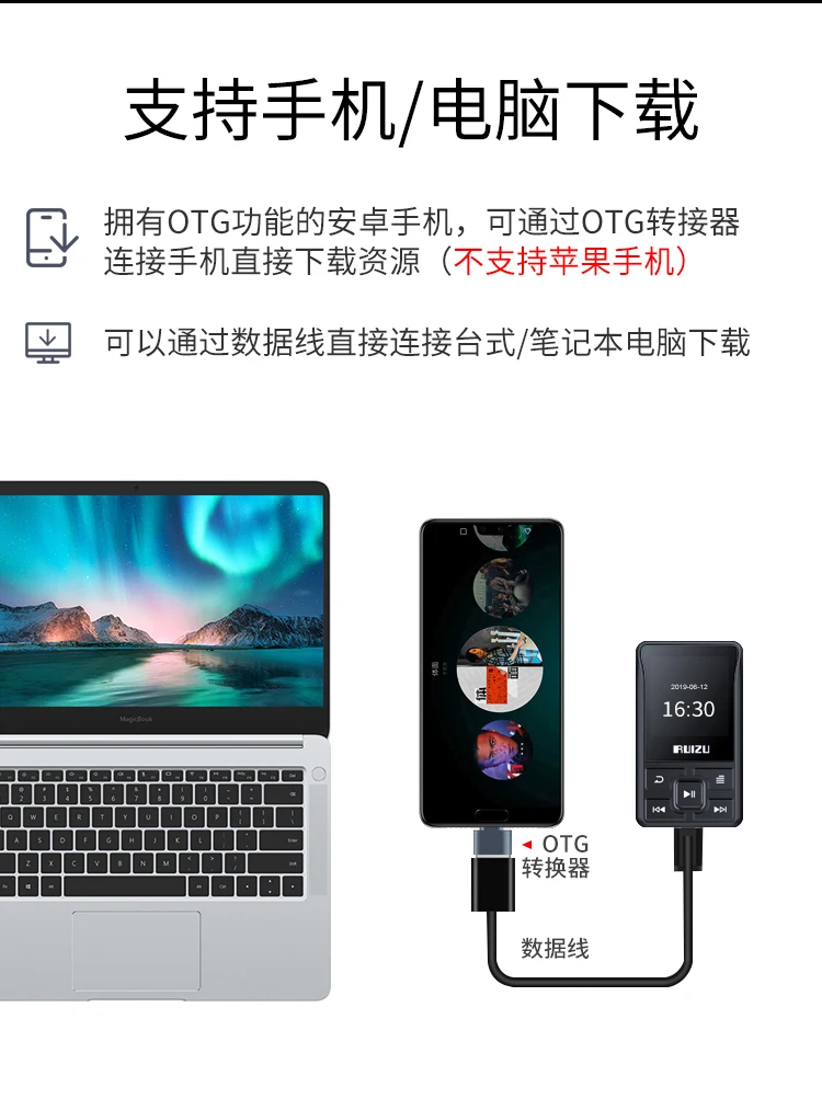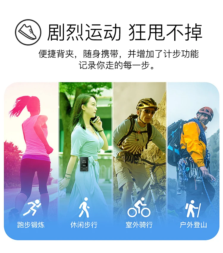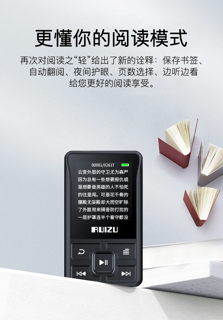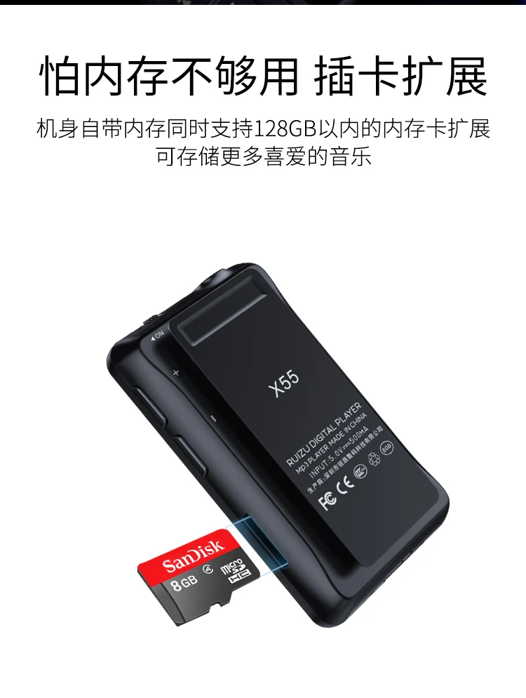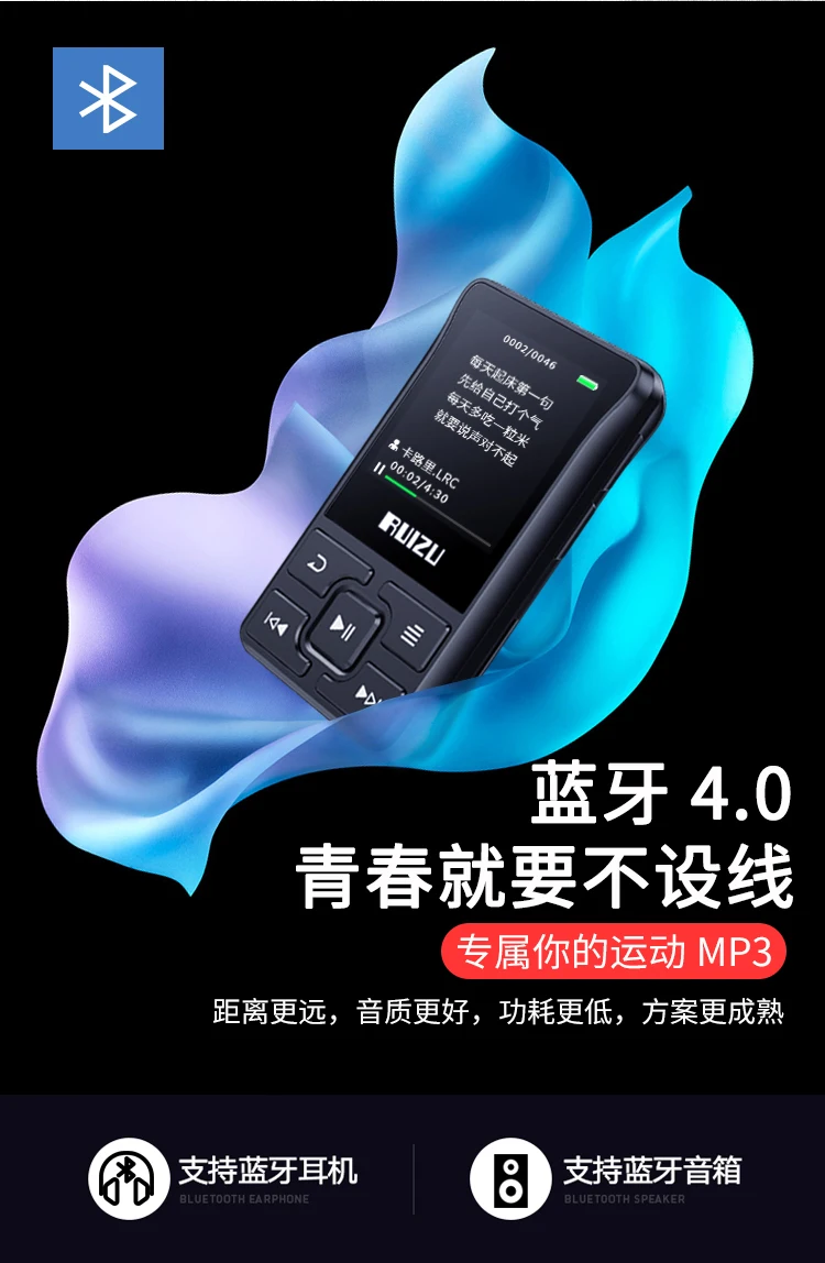 Оригинальный MP3-плеер ruizu x55 с зажимом Bluetooth, портативный мини-встроенный 8G с шагомером, Радио, запись электронных книг