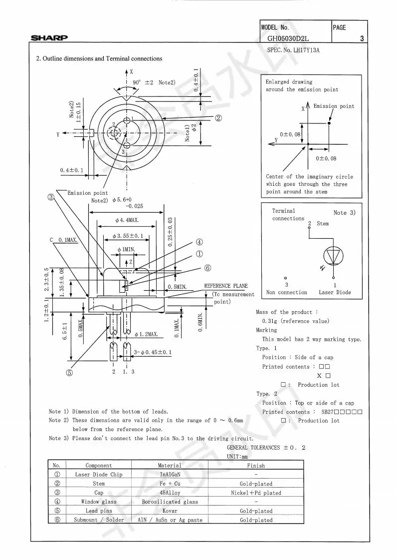 5 шт. GH05030D2L 5,6 нм 35 мВт мм зеленый лазерный диод LD no PD