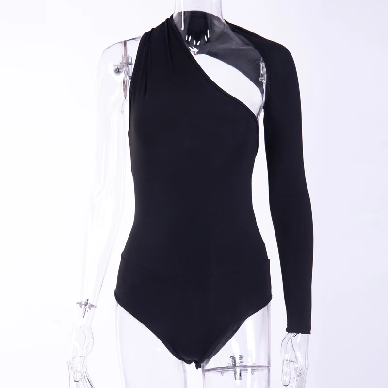 Однотонное пикантное боди на одно плечо, женское облегающее боди на...