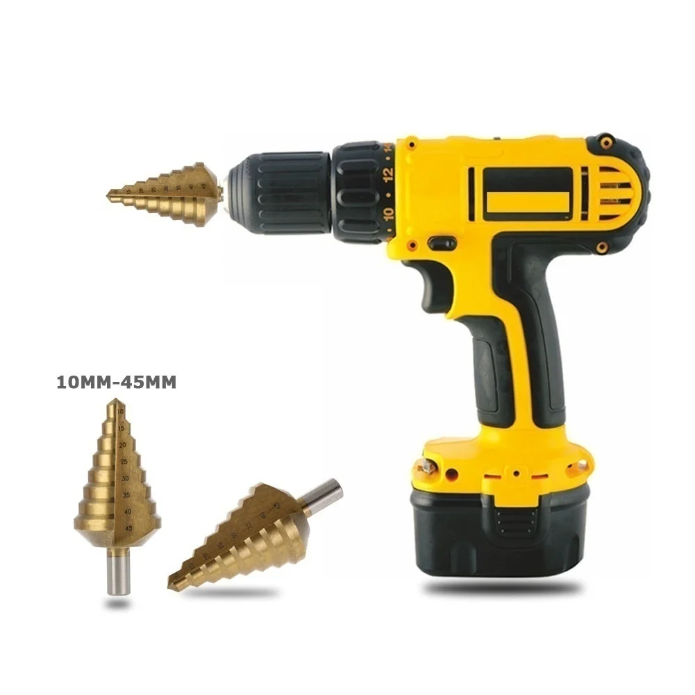 Набор ступенчатых Сверл из быстрорежущей стали, конусное отверстие, конические, 4-122032 мм, металлические шестигранные биты с титановым покрытием
