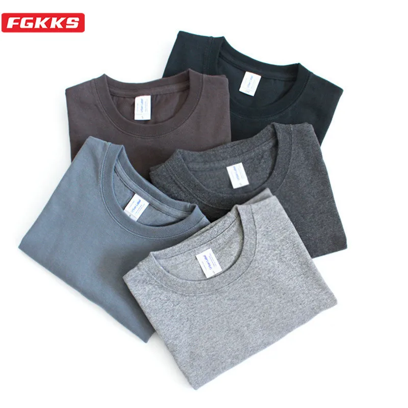 Мужская хлопковая футболка FGKKS, однотонная Повседневная футболка с коротким рукавом, топы для лета, 2021