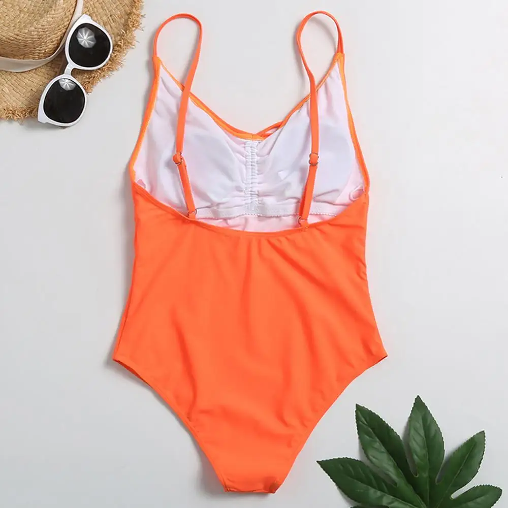 Летний женский сексуальный купальник с открытой спиной, боди, модный цельный оранжевый купальник, пляжная одежда, комплект бикини для женщин 2020, горячая распродажа