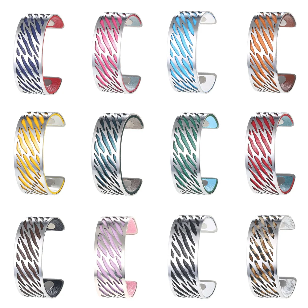 Женский Браслет-манжета из нержавеющей стали, со сменной кожей