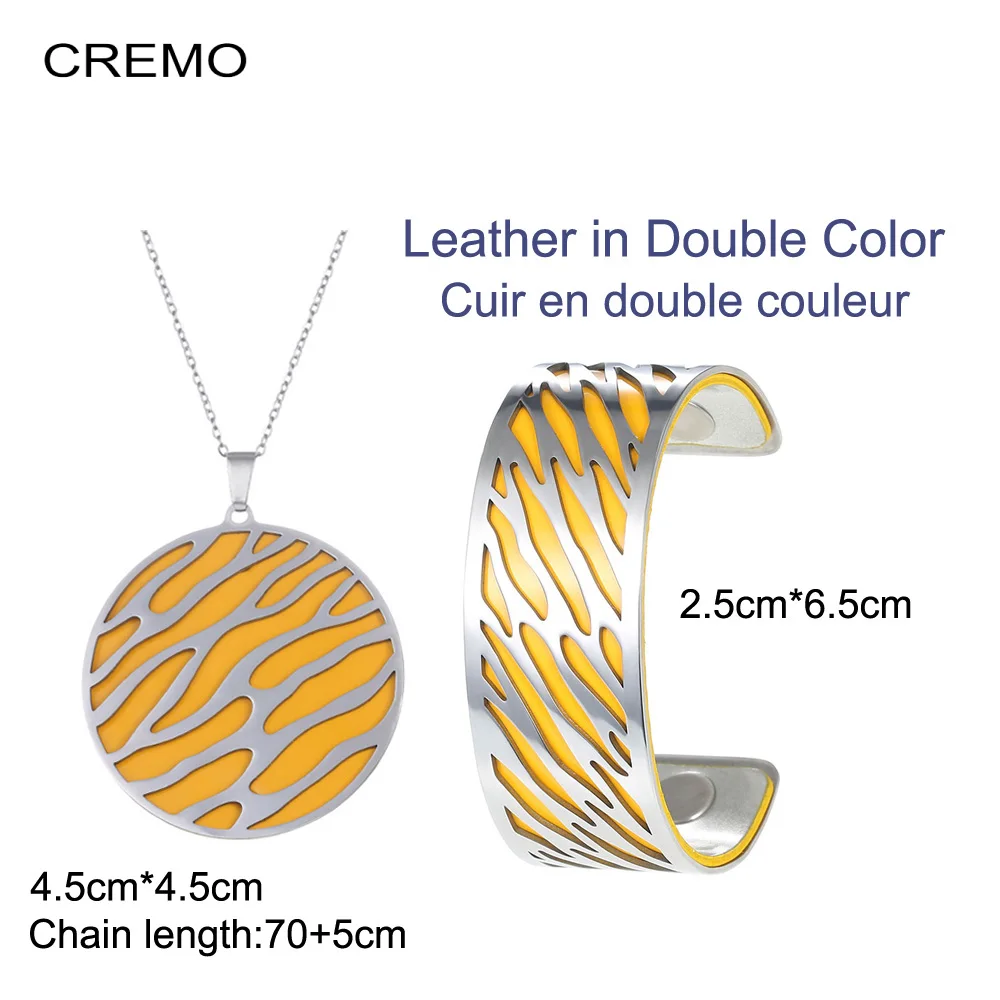 Женский браслет и ожерелье Koaem Cremo, двухсторонний кожаный обруч из нержавеющей стали для свадьбы, Brincos Pulseras Bague