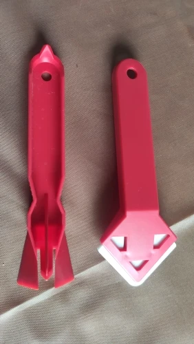 Я использовал его для сглаживания силикона. Не скребок. Это дешевый инструмент, но для сглаживания работает нормально. Но также используйте мыло.