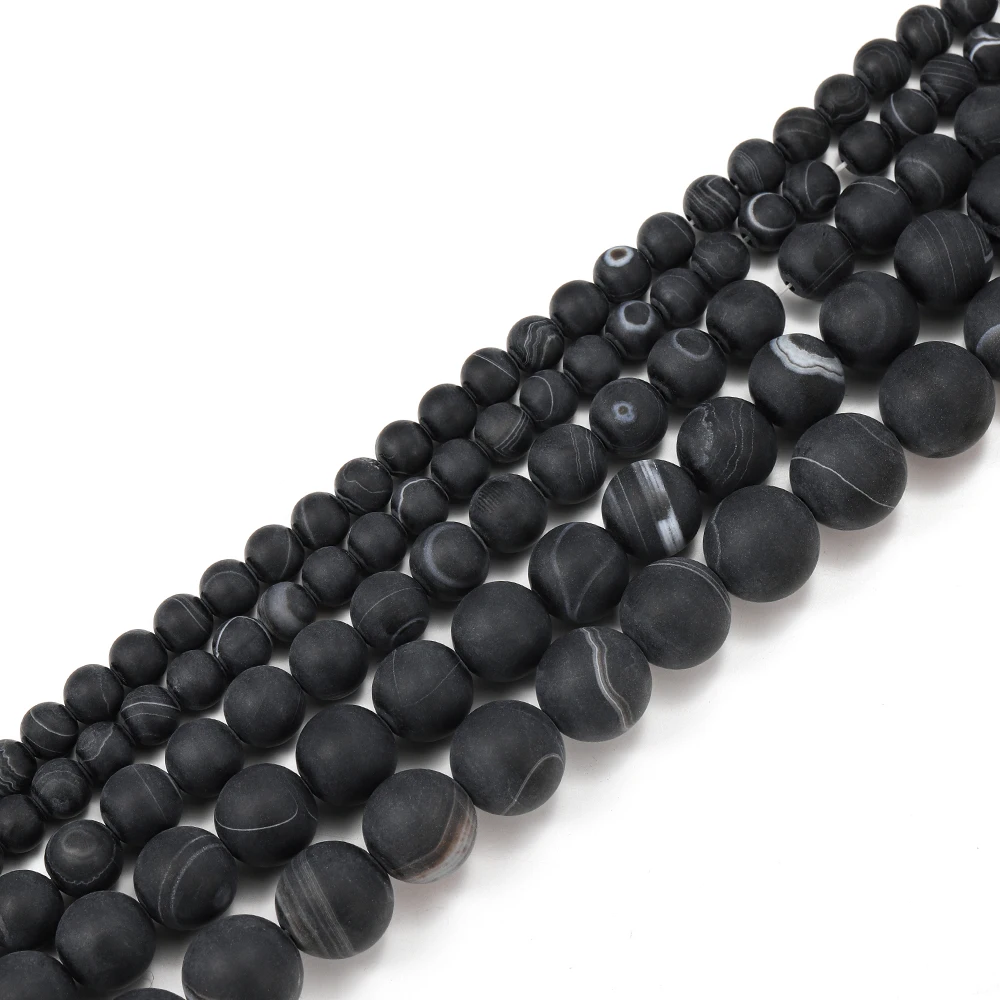 Бусины Из полосатые Агаты натурального черного матового камня, 1 нить