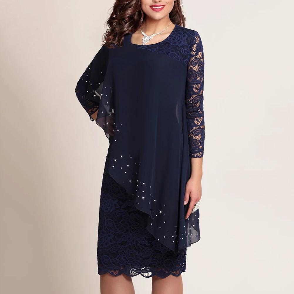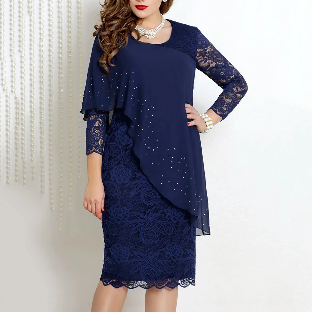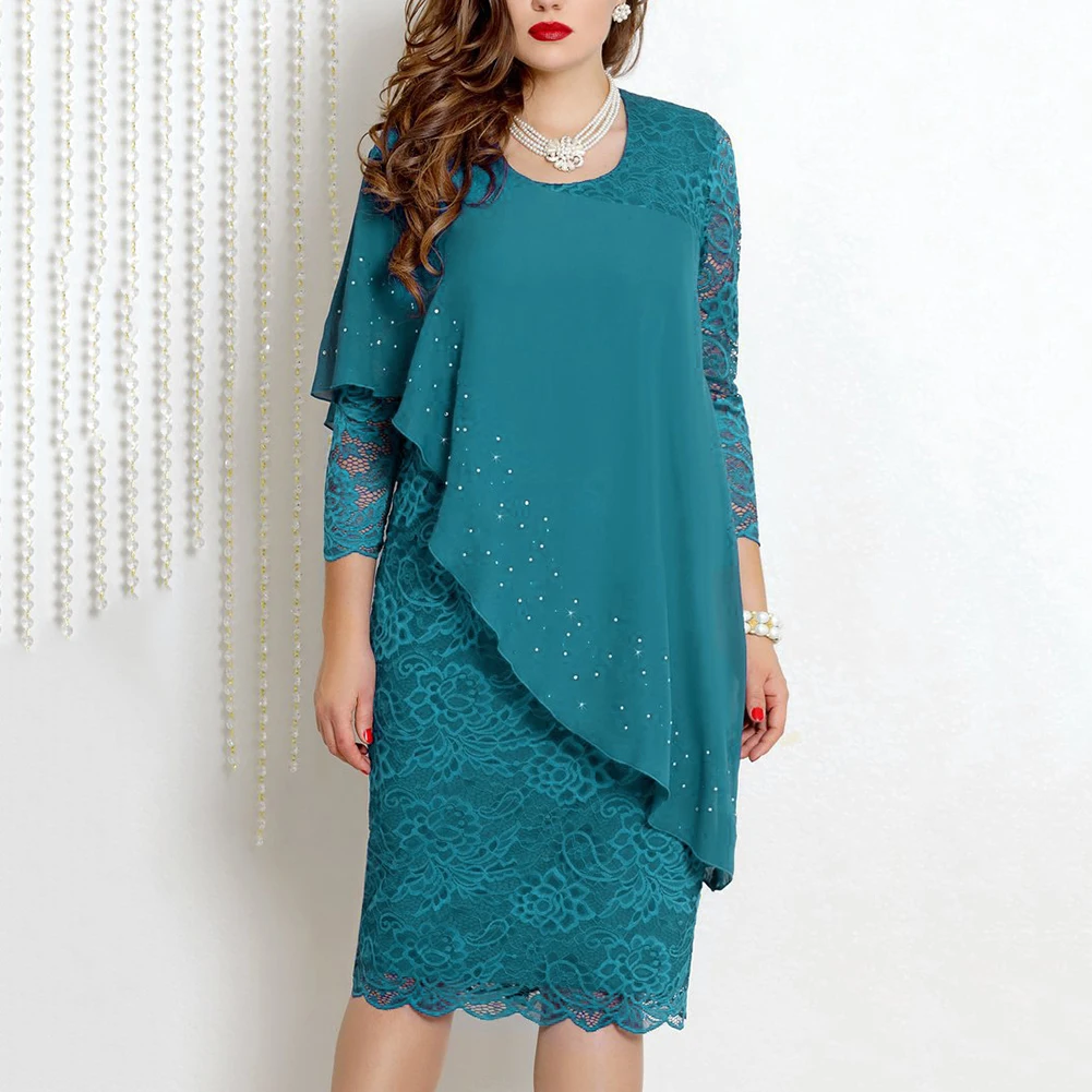 Платье женское кружевное однотонное с длинным рукавом, круглым вырезом и рукавом 34