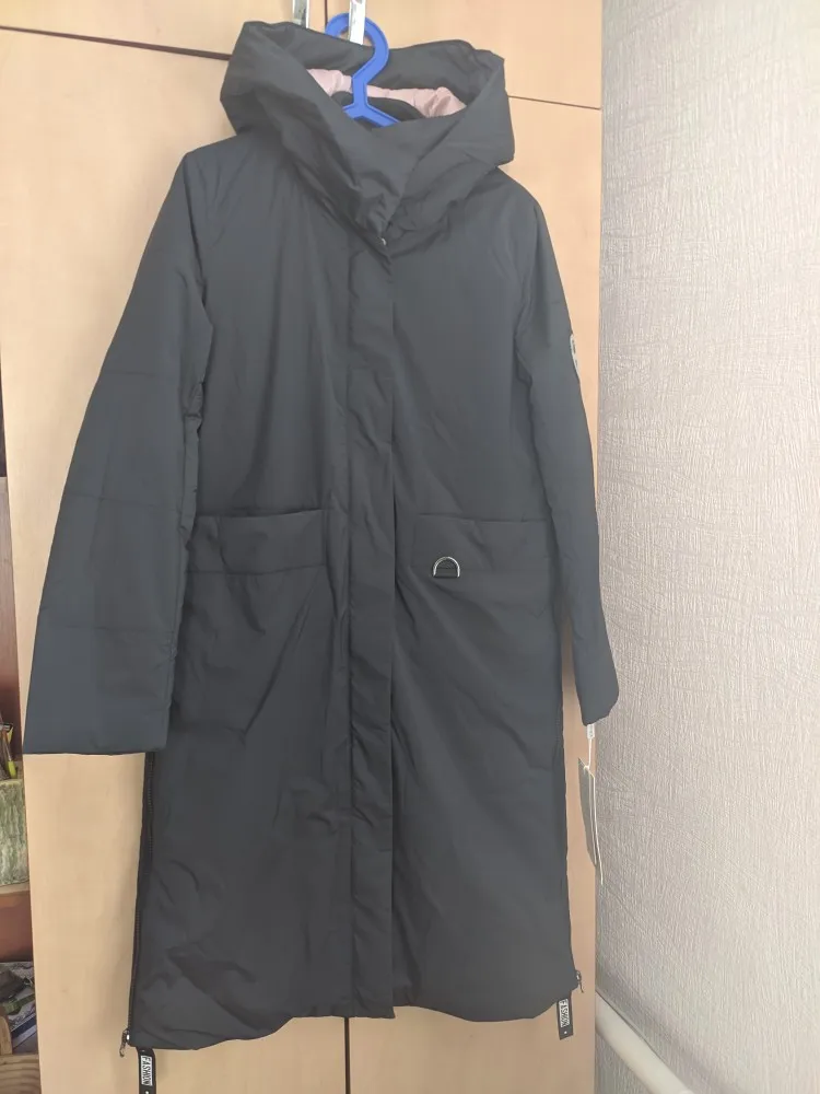Доставка у Украину новой почтой 3 недели. Пальто хорошее, осеннее, подойдёт наверное от +5 до +15, тонкий синтепон пристрочен к подкладке. Нитки не торчат, швы ровные, фурнитура рабочая. Бирка с рекомендациями по уходу на русском языке. Капюшон глубокий, в сложенном виде примерно 30см, на двух кнопках, есть петля чтобы вешать на крючок, два кармана, глубиной 21 см, на кнопке, начинаются примерно на талии, внутренний на липучке, 17см. Пальто застёгивается на молнию и кнопки. Боковые разрезы на молнии, растегиваются выше начала карманов. Пальто ниже колена, рост 168, ог100, размер 50. Товар соответствует описанию, рекомендую!