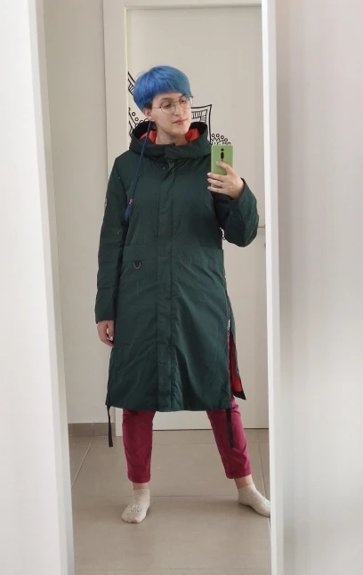 Качество пошива хорошее, но есть запах, чего раньше у этой фирмы не было. На европейский з6/38 можно брать M, L слишком свободный, хотя возможно это такая модель. Если вы любите держать руки в рукавах, то с этой моделью это не очень удобно, воротник очень широкий.